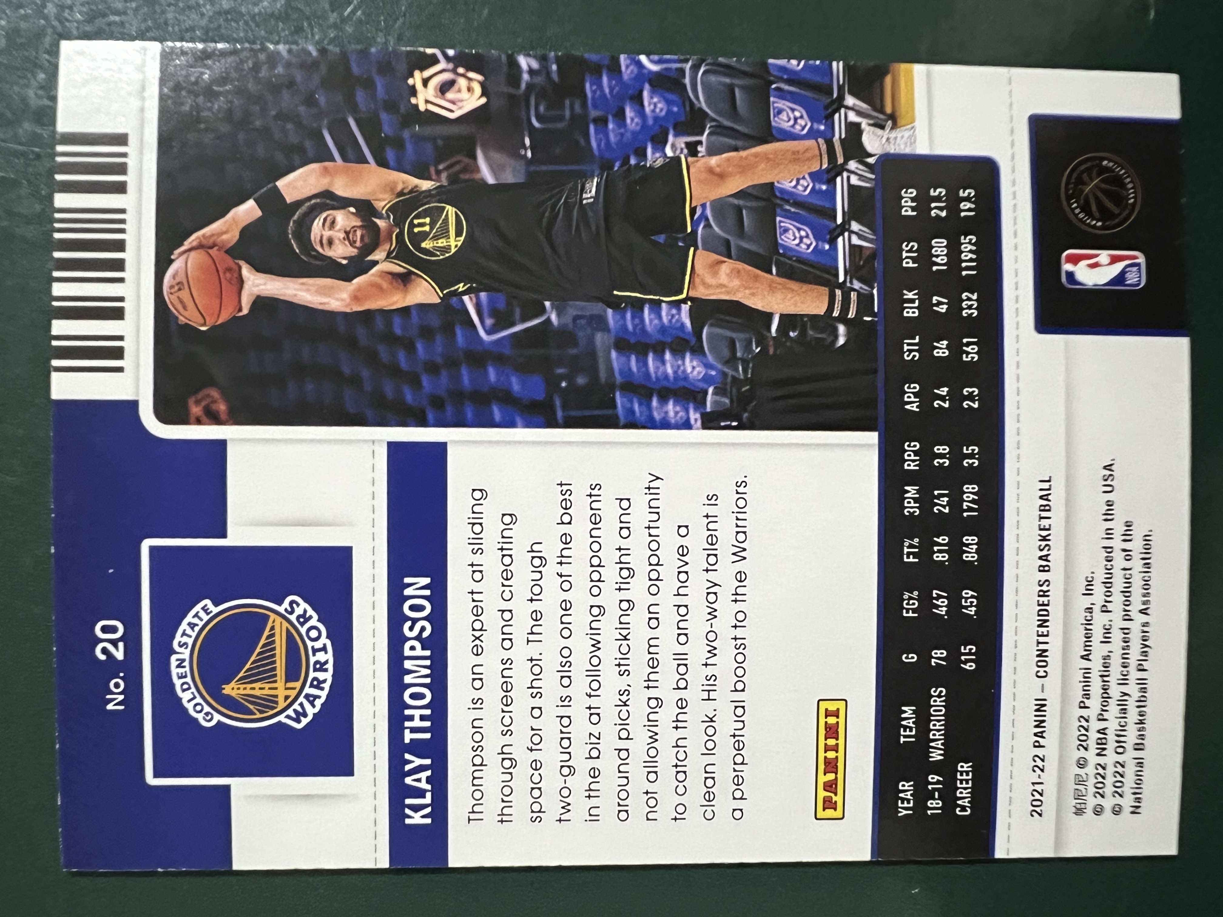 2021-22 Panini Contenders Klay Thompson #20 克莱 汤普森 勇士 球票 Base 收藏凑套 卡品如图