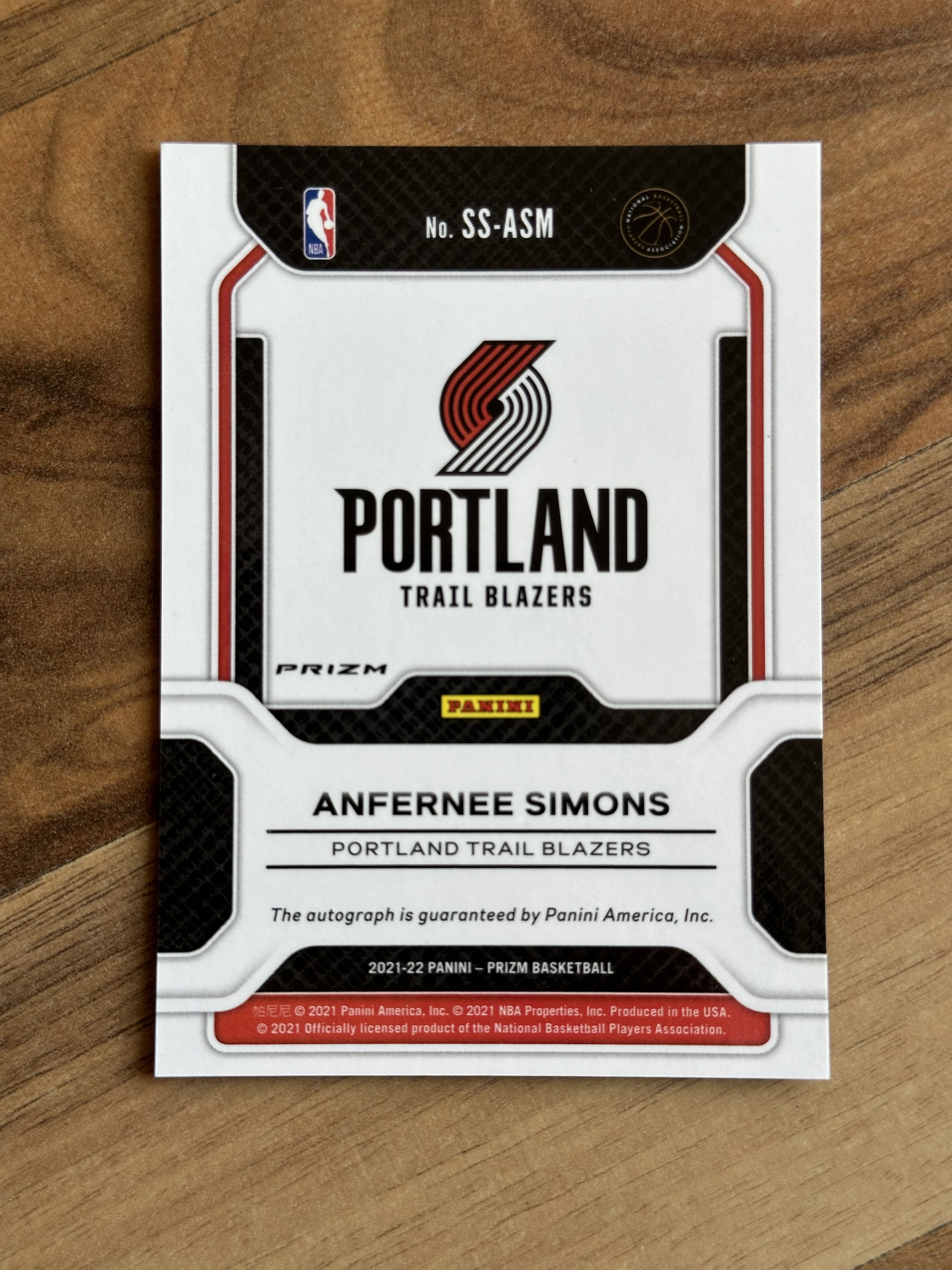 2021-22 Panini Prizm Anfernee Simons 安芬尼·西蒙斯 小西蒙斯 prizm系列 签字