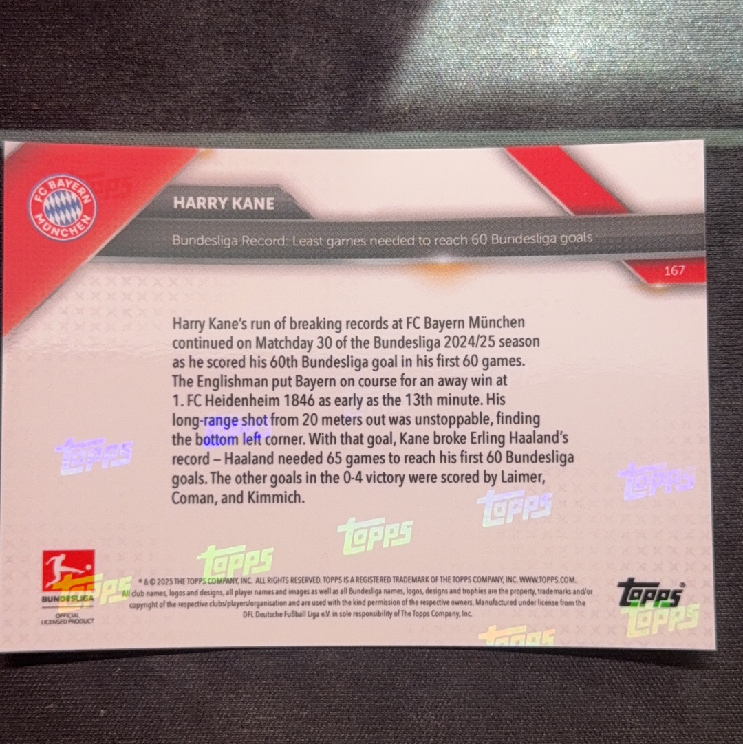 2023-24 Topps Now Harry Kane 德甲 欧冠 欧洲杯 哈里凯恩 拜仁慕尼黑 德甲 英格兰前锋 最早到达60粒德甲进球的球员 屁屁卡卡 实卡精美 收藏凑套必备 第一张