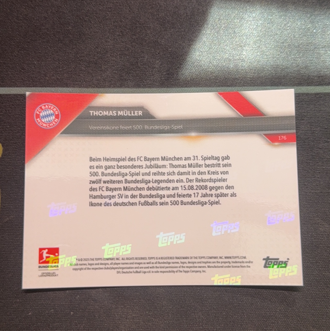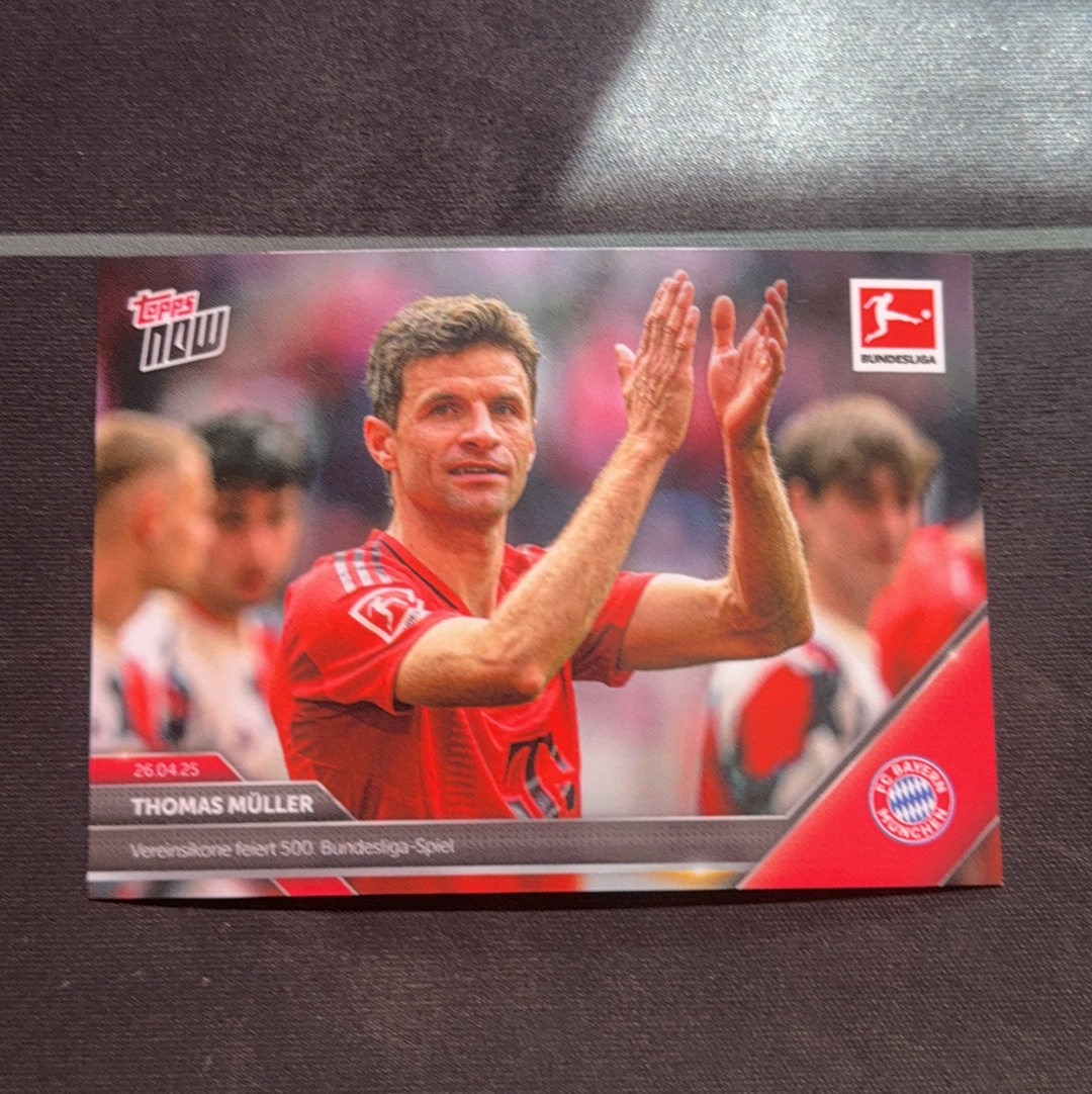 2024-25 Topps Now Thomas Müller 拜仁慕尼黑 托马斯穆勒 记录队史出场第一 500场德甲联赛 里程碑比赛进球 队史第一人选图 屁屁卡卡 德甲 欧冠 欧洲杯 世界杯
