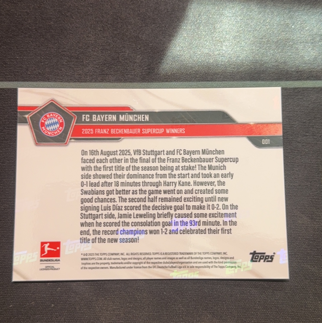 2024-25 Topps Now FC Bayern München 拜仁慕尼黑 德甲 欧冠 德国超级杯 德国 2025年德国甲级联赛冠军 德国超级杯 捧杯夺冠 实卡精美 穆勒 穆夏拉 莱万