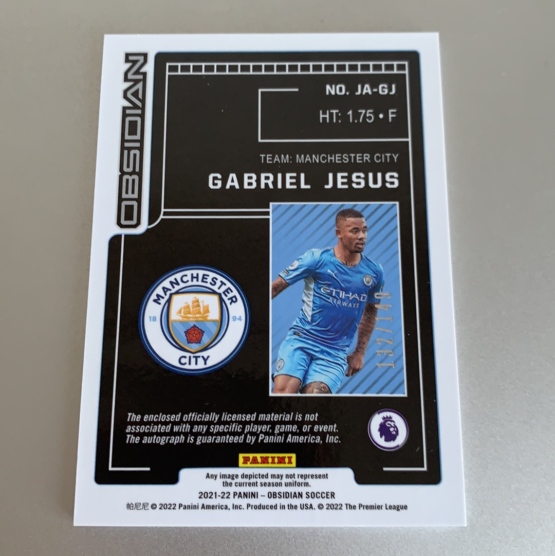2021-22 Panini Obsidian Gabriel Jesus 【玄兔拍卖】热苏斯 149编 球衣切割 签字 曼城 阿森纳 巴西