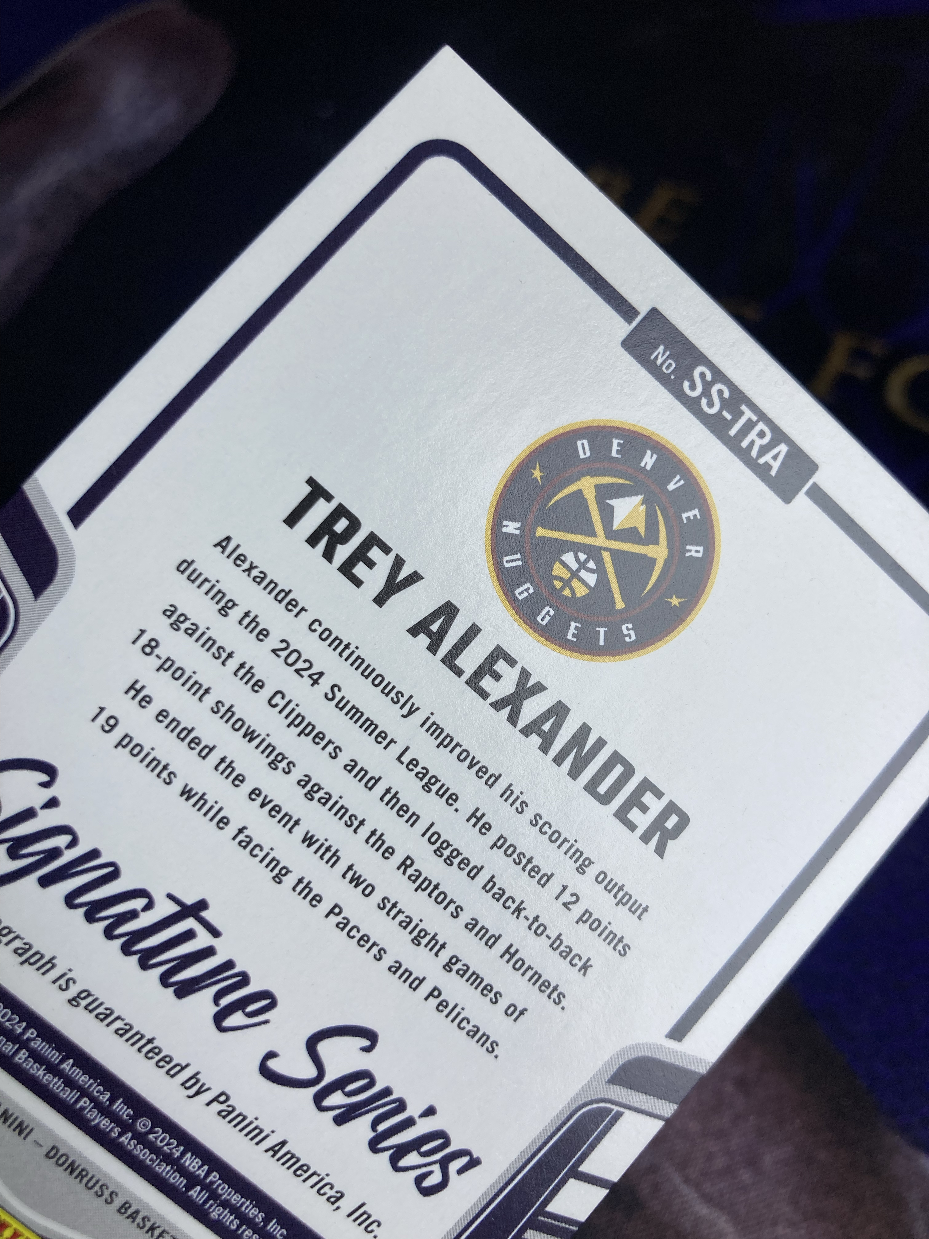 2024-25 Panini Donruss Trey Alexander RC 【星卡优转】杜蕾斯系列 掘金 新秀RC 泰勒 亚历山大 签字 银折 专收必备 微瑕如图 昊