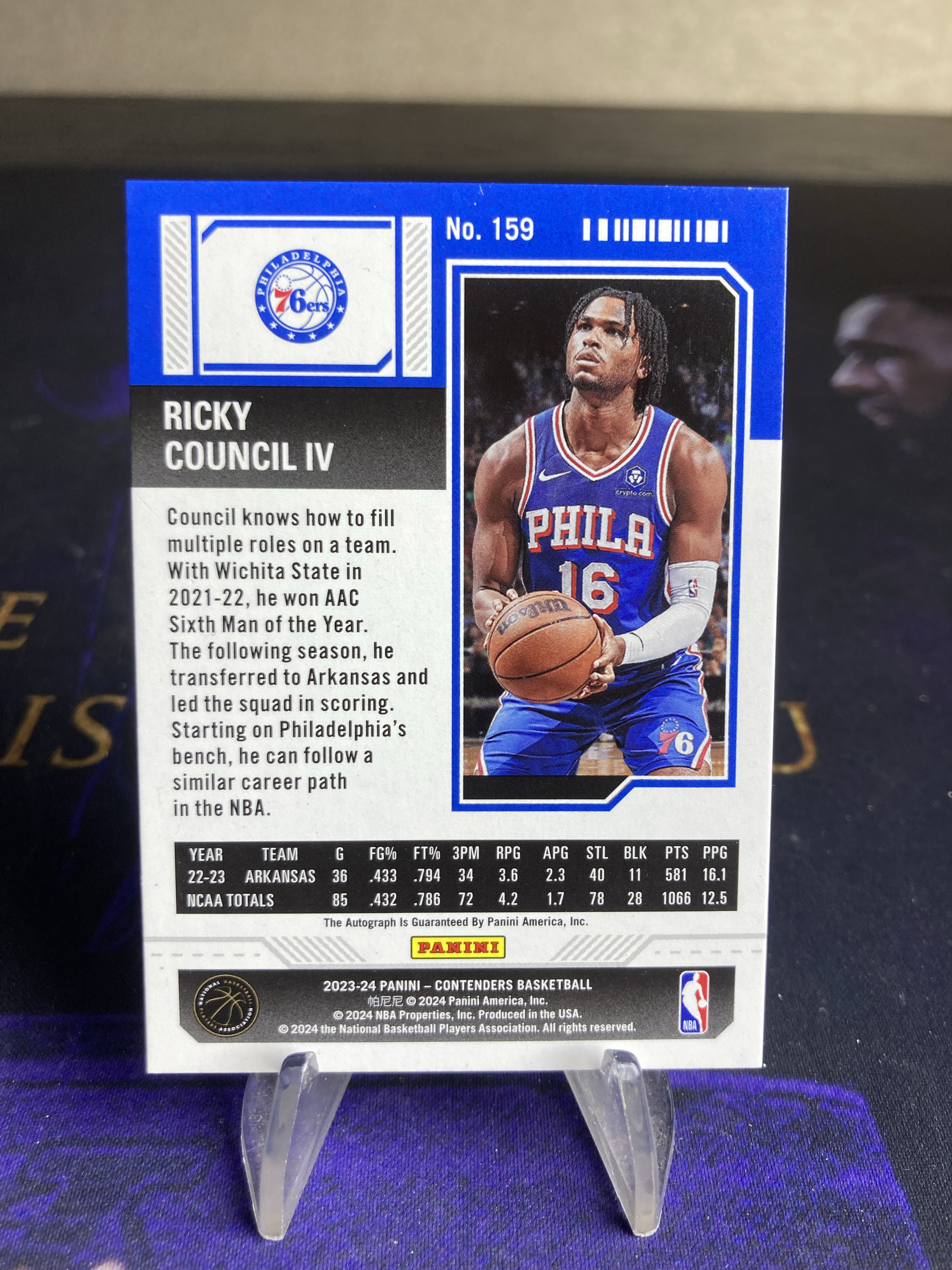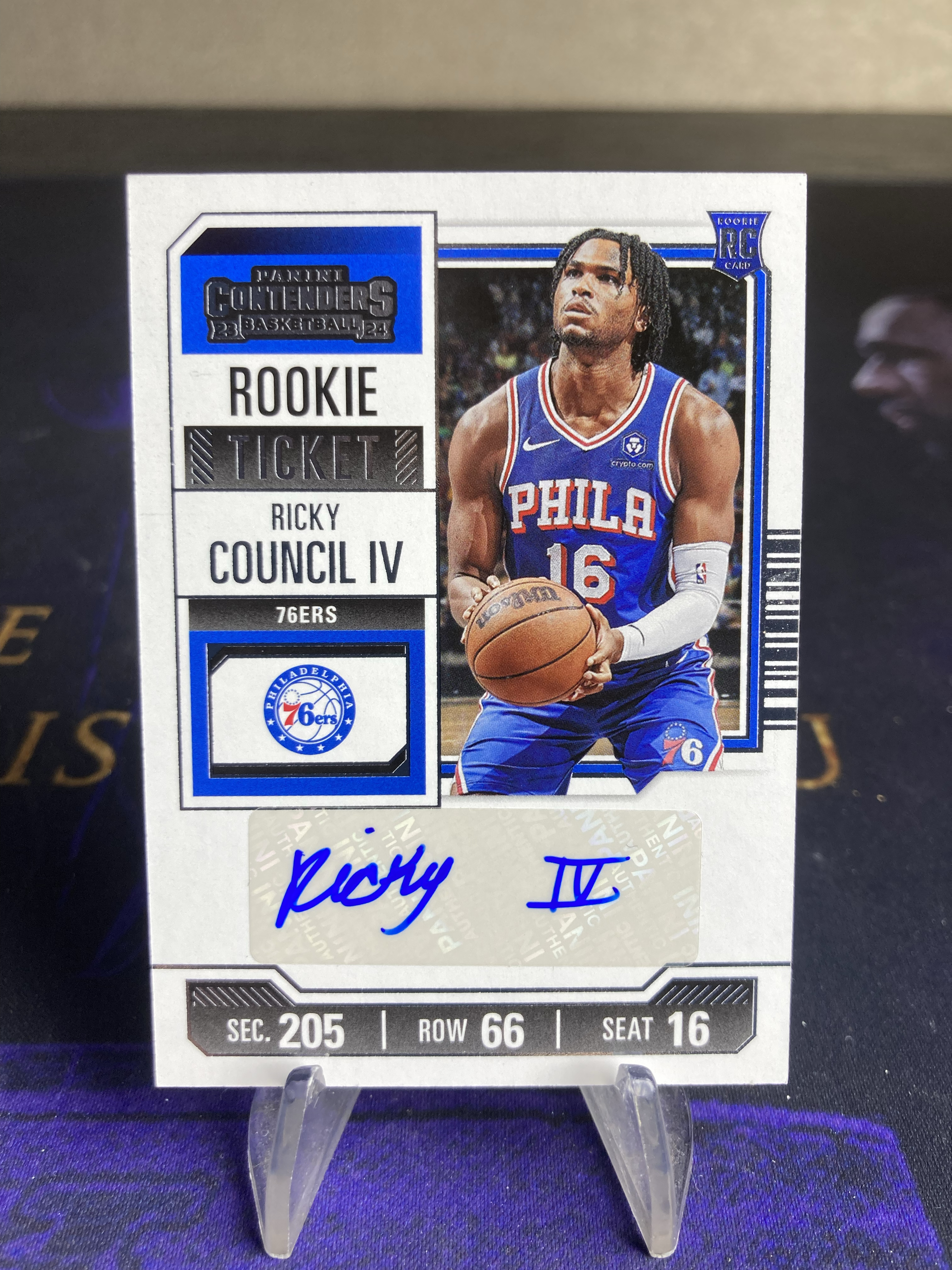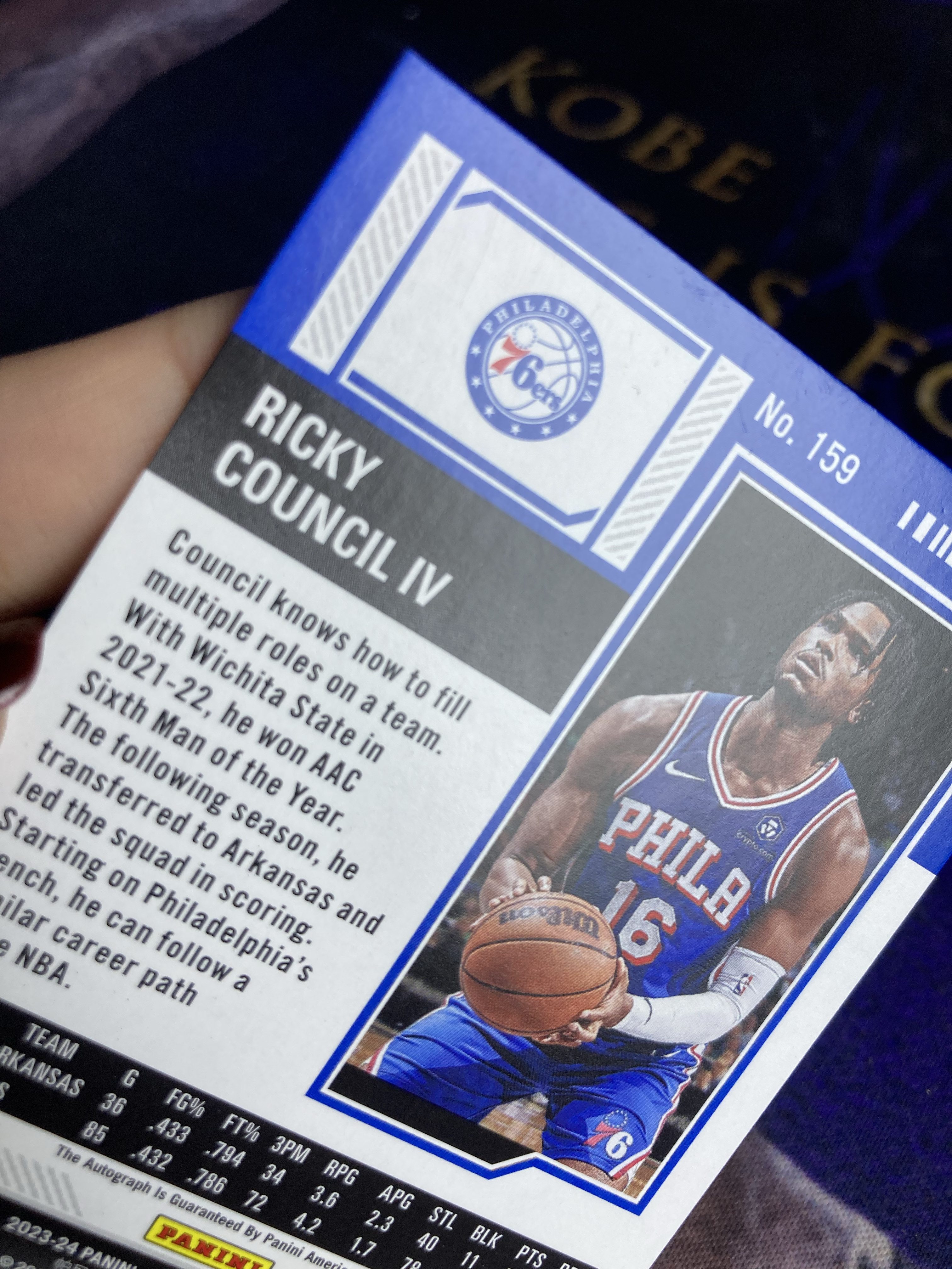 2023-24 Panini Contenders ricky council RC 【星卡优转】球票系列 76人 新秀RC 里基 康西尔四世 签字 专收必备 微瑕如图 昊