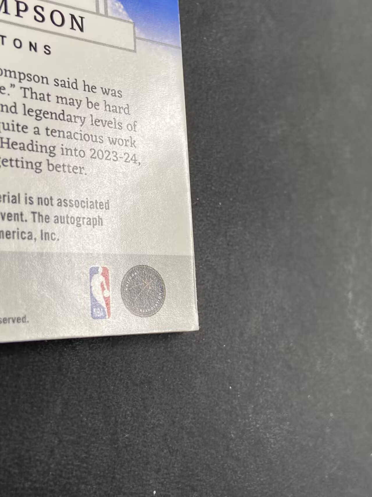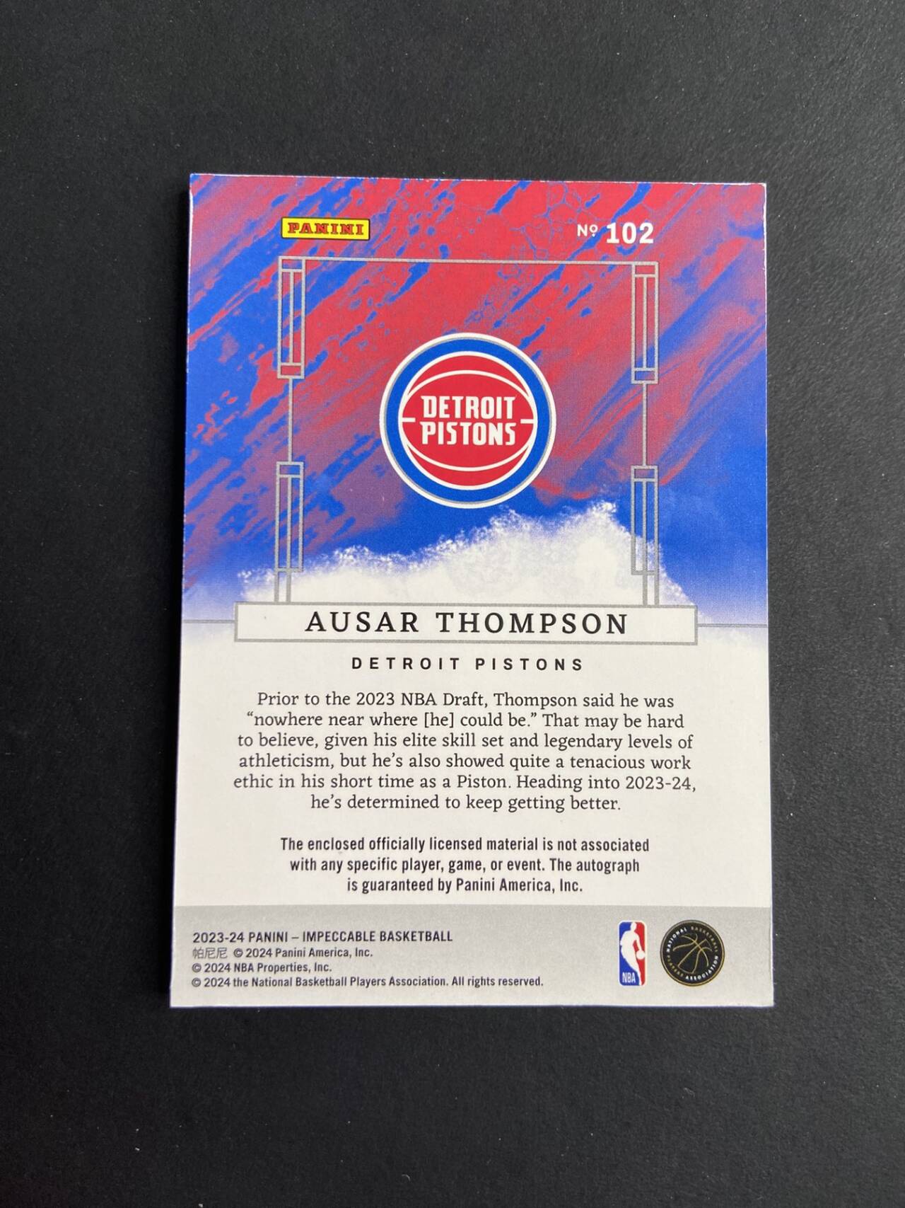【重要说明】本拍品(球星卡及其他合法合规版权卡片)为委托方委托我司进行网络拍卖,我司身份为卡片类代理服务机构,不拥有该拍品所有权。根据税务规定,拍品交易全额发票由委托方开具,我司仅就服务环节收取的费用开具服务费发票,确保交易各方税务信息合规。