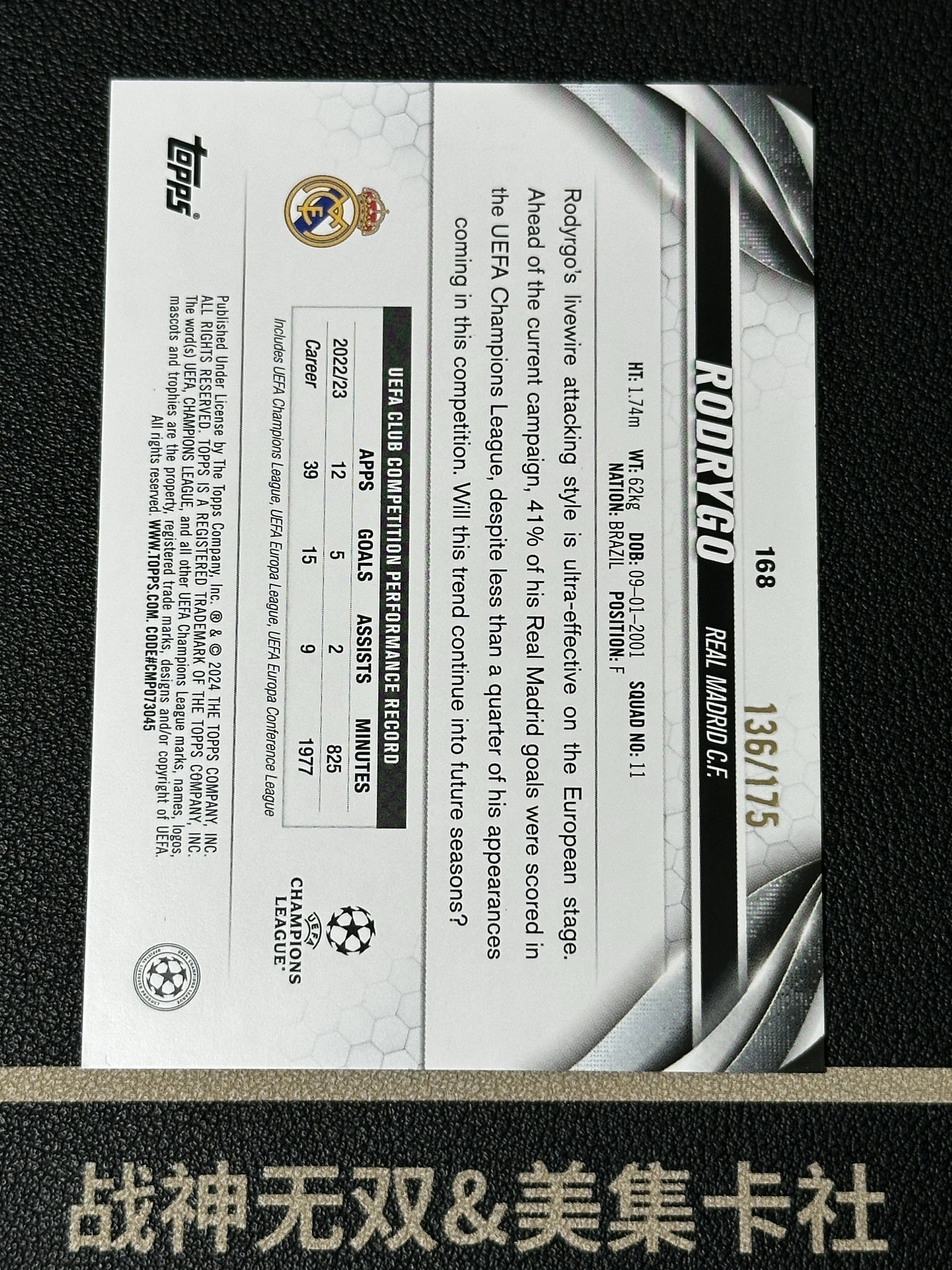2024 Topps Chrome Rodrygo 罗德里戈 皇马 碧玉折 TC 皇家马德里 175编 蓝折 战神无双(法内张三)