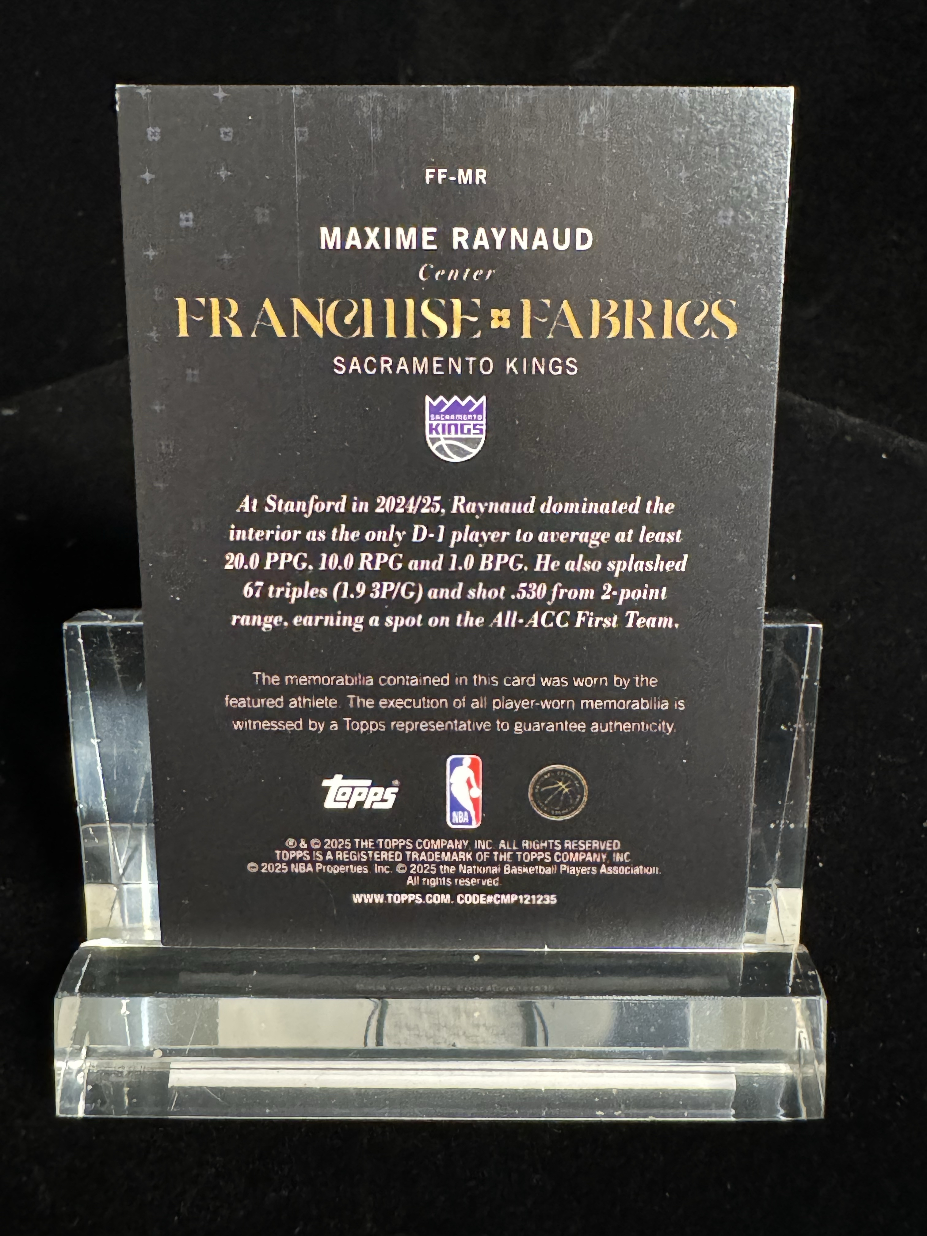 2025-26 Topps flagship Maxime Raynaud RC 【棒棒拍卖】国王新秀RC Maxine Raynaud马克西姆雷诺 小窗球衣物料 瑕疵如图