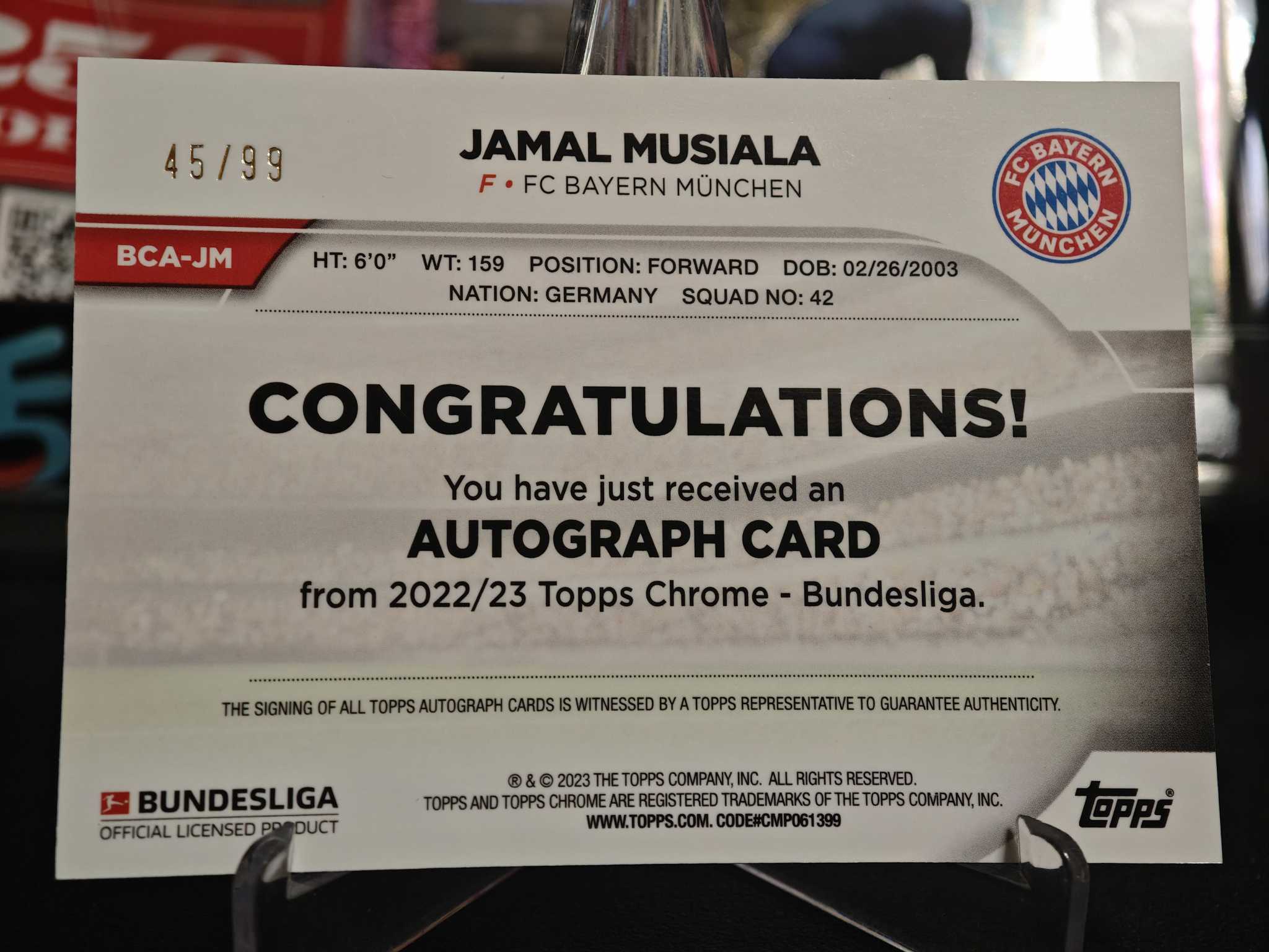 2023 Topps Chrome Jamal Musiala [隔天不合并]🇩🇪 拜仁慕尼黑 45/99 绿折 签字 穆夏拉 字迹清晰 沃尔特玛德 施蒂勒 实卡拍摄 下拍前仔细阅读商品描述
