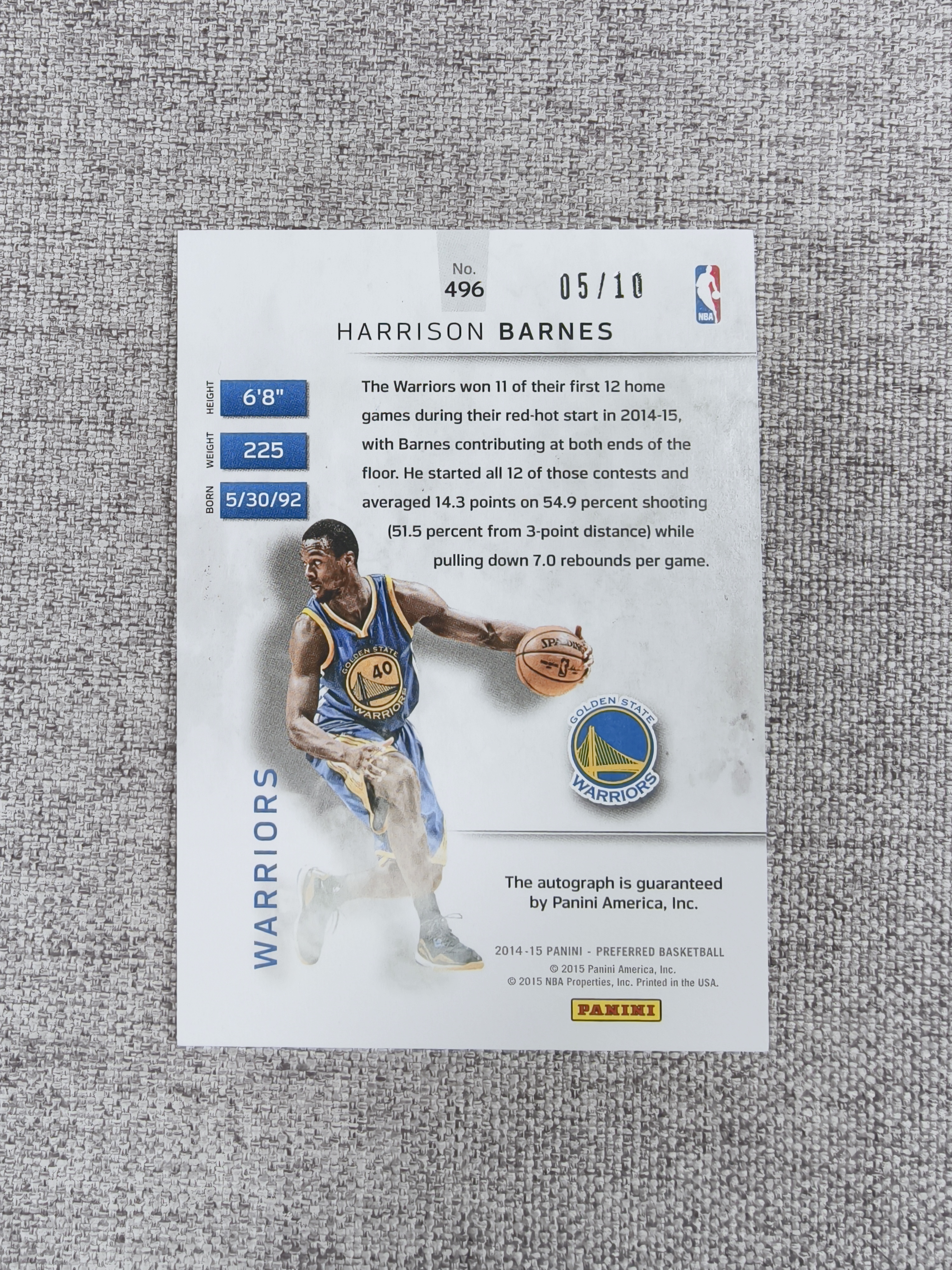 2014-15 Panini Preferred Harrison Barnes 哈里森 巴恩斯 5/10编 稀有 签字 卡签 勇士