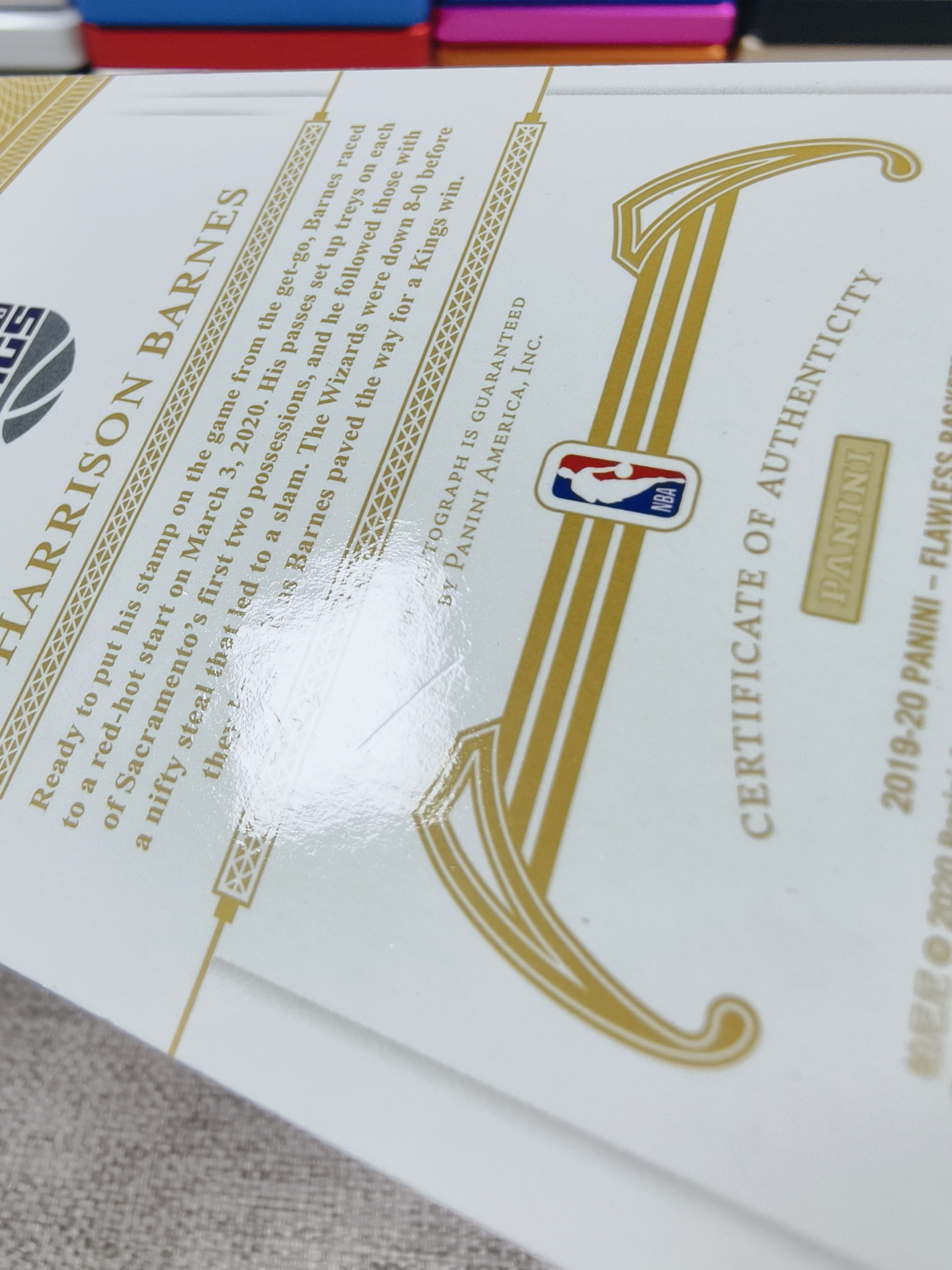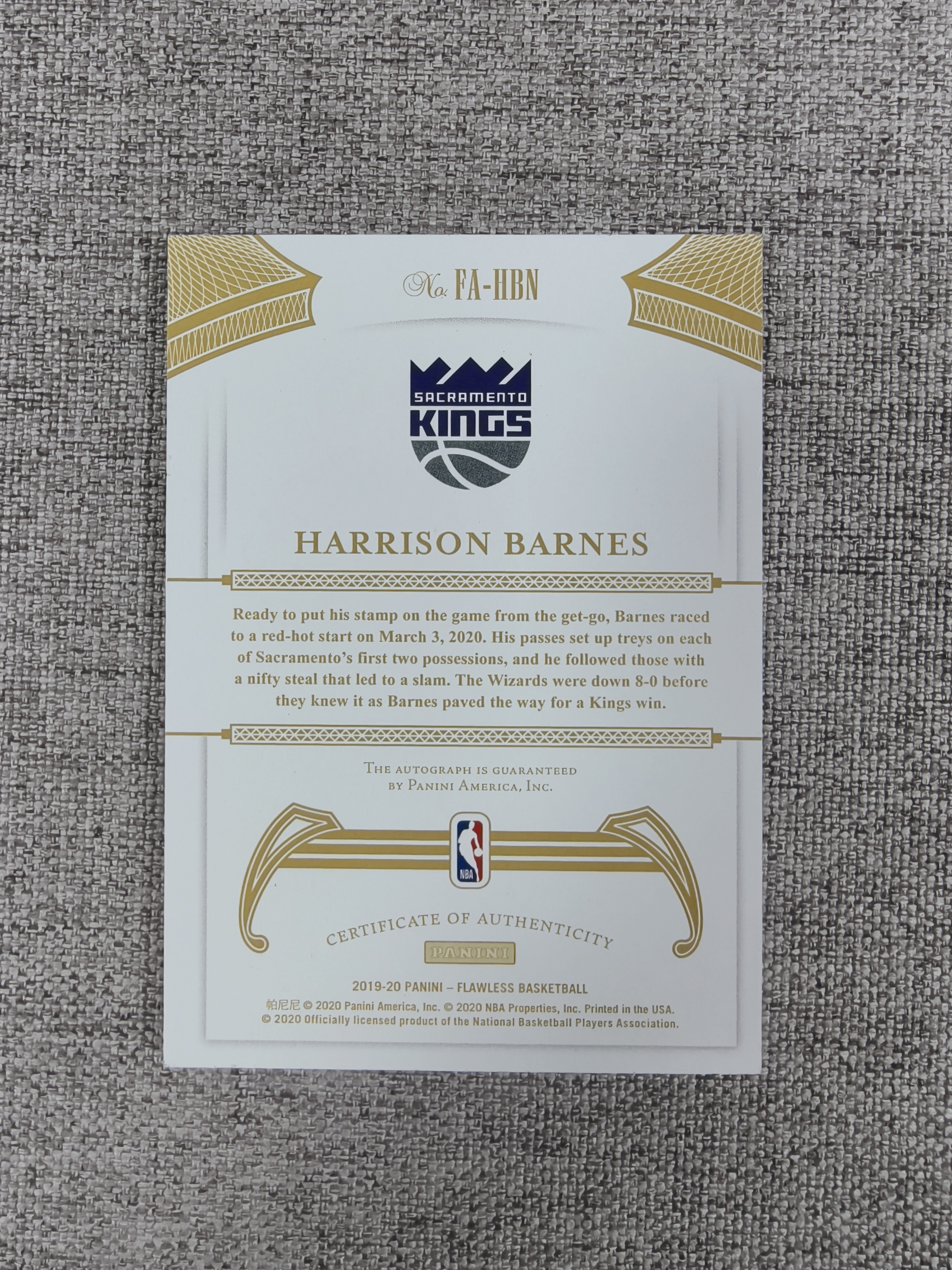 2019-20 Panini Flawless Harrison Barnes 哈里斯 巴恩斯 手提系列 签字 卡签 3/25编 稀有 签字 国王 颜值极佳