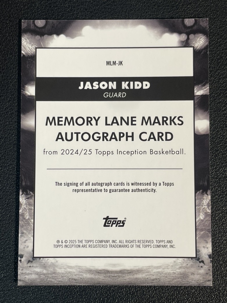 2025 Topps inception Jason Kidd 232 杰森 基德 OTE 盗梦空间 折射 蓝折 签字 25编 微瑕如图 卡品如图 封印