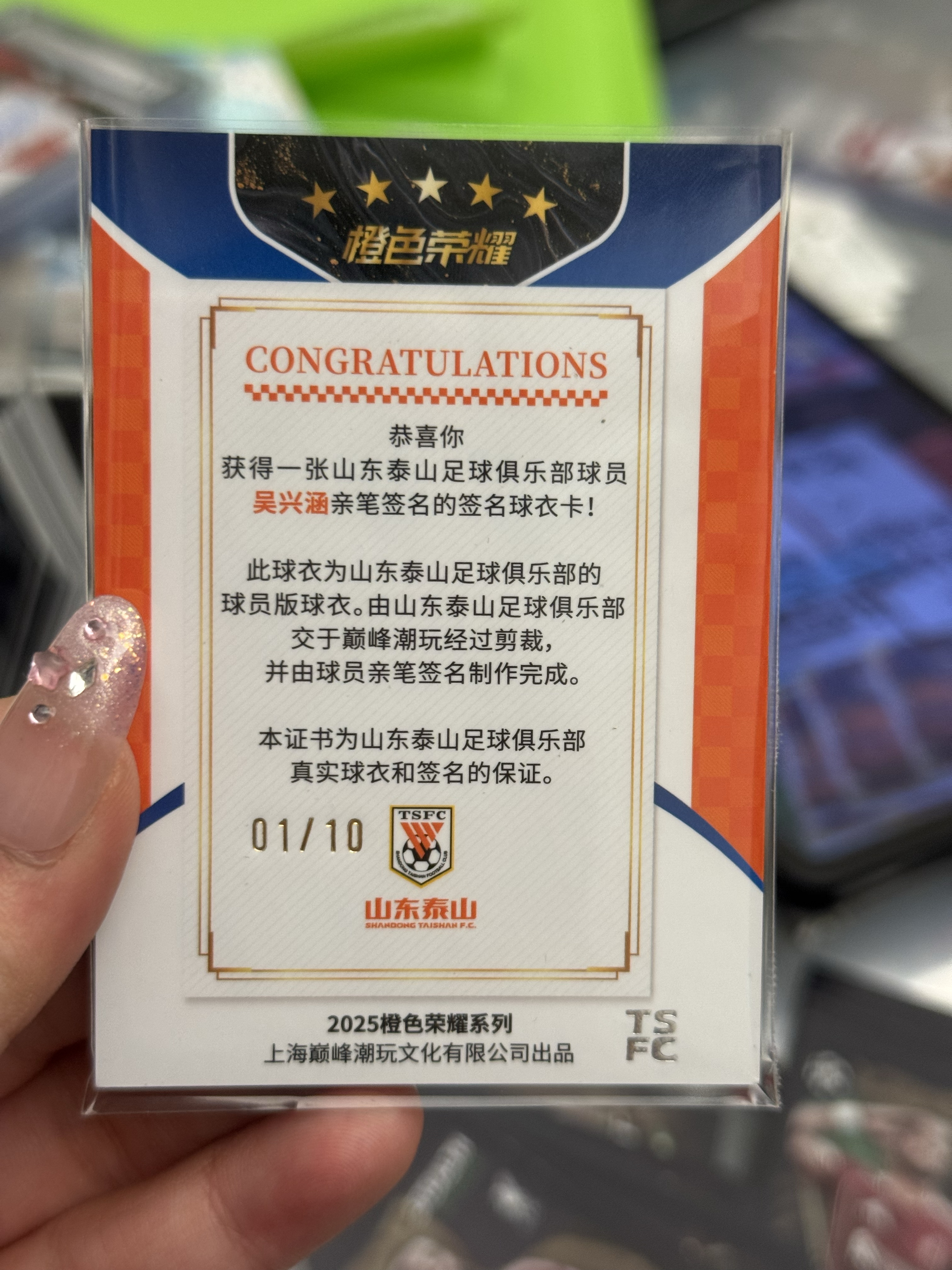 2025 D-PEAK 巅峰潮玩 山东泰山足球俱乐部 泰山队盒 鲁能 吴兴涵 01/10编 首编 卡签 物料签 球衣签 签字 暴力切割 低编 金折 折射 不保卡品 爱维权的勿拍 yyw