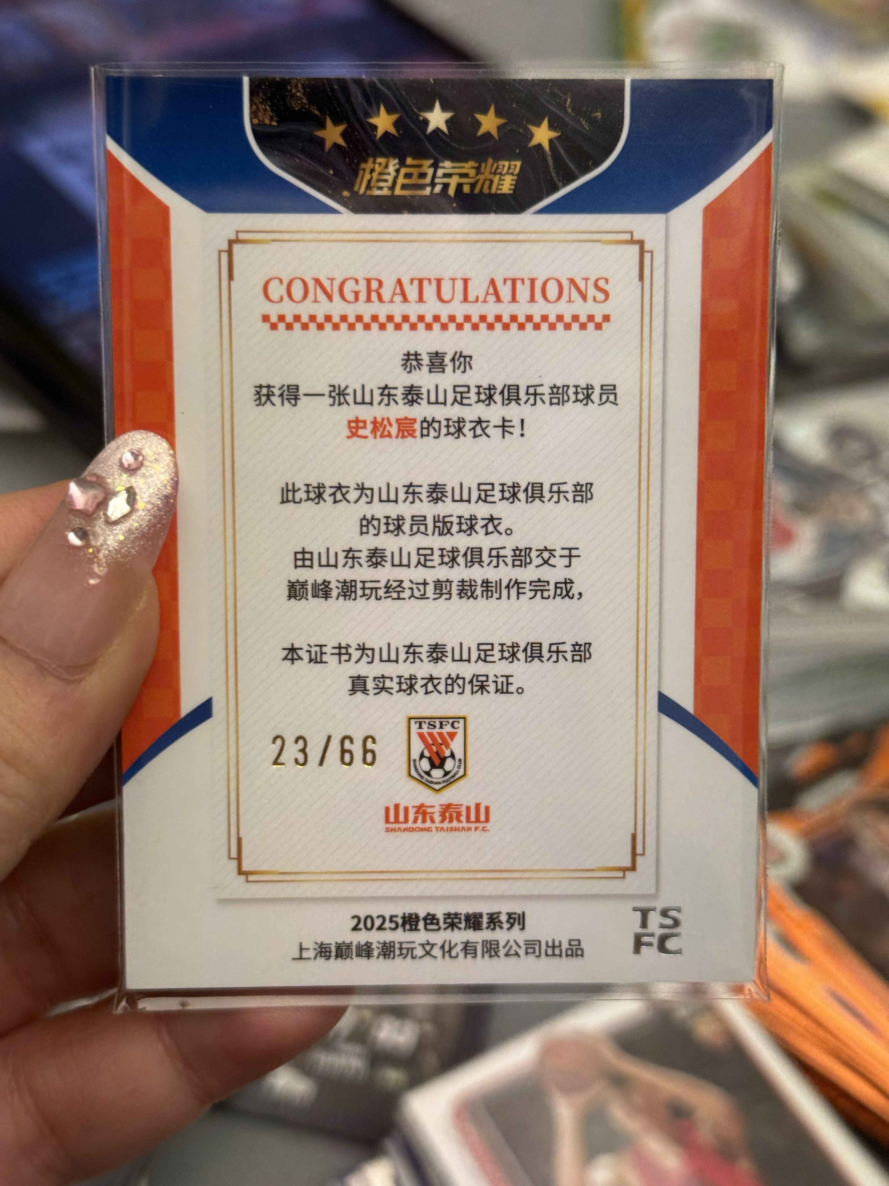 2025 D-PEAK 巅峰潮玩 山东泰山足球俱乐部 泰山队盒 鲁能 史松宸 物料 球衣 切割 23/66编 银折 折射 不保卡品 爱维权的勿拍 yyw