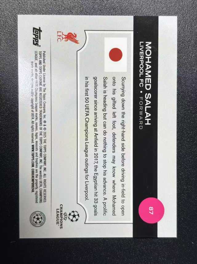 2025 Topps Chrome Mohamed Salah [菠萝]欧冠TC 穆罕默德 萨拉赫 利物浦 埃及法老 125编 粉mojo折 日本版 卡品如图 收藏 凑套必备