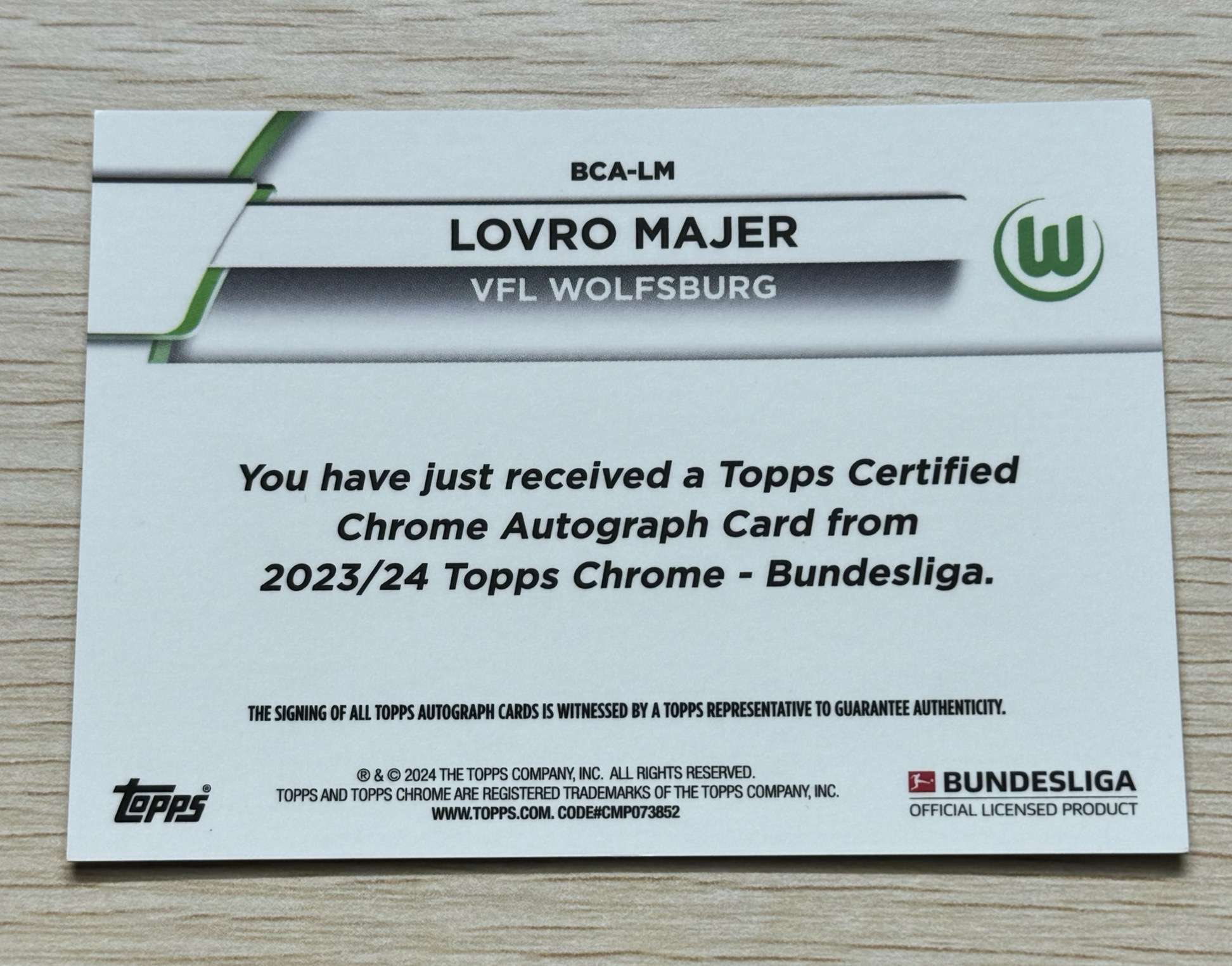 2023-24 Topps Chrome Lovro Majer 德甲TC 马耶尔 沃尔夫斯堡 克罗地亚🇭🇷 德甲60周年折 折射 签字 稀有 少见 完美墨迹 凑套必备 实卡精美 不保卡品