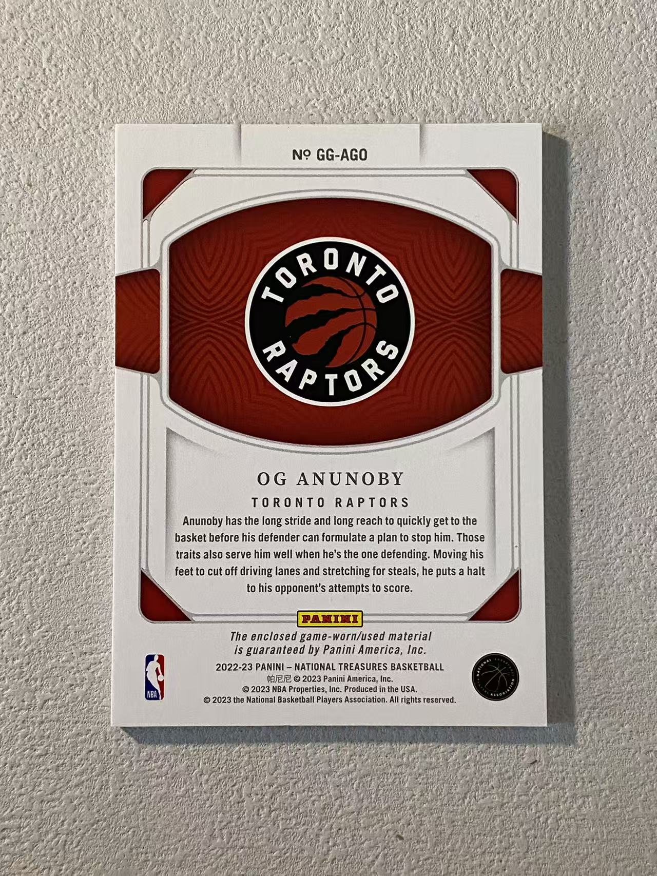 2022-23 Panini National Treasures OG Anunoby 国宝 猛龙 og 阿努诺比 /99编 球衣 物料 收藏必备