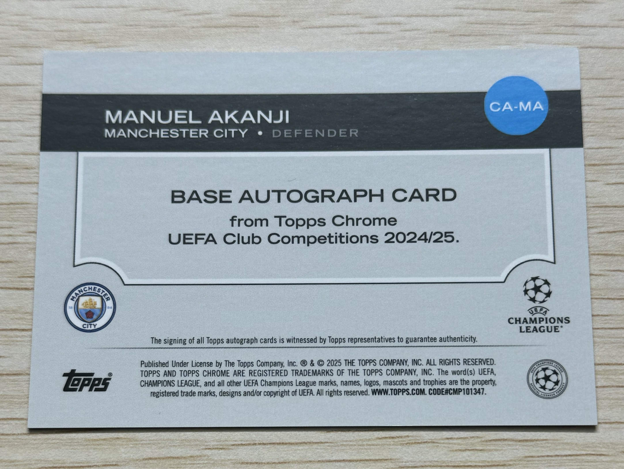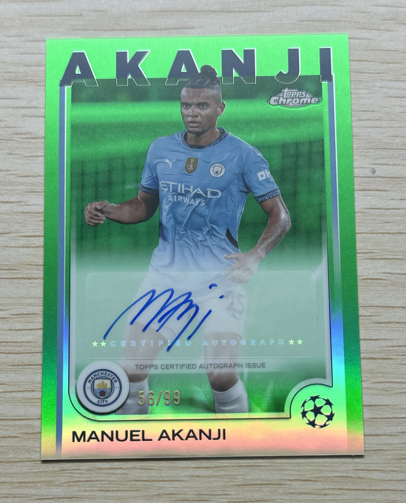2025 Topps Chrome Manuel Akanji 欧冠TC 曼城 瑞士🇨🇭 阿坎吉 签字 绿折 折射 56/99编 实卡精美 完美墨迹 凑套必备 不保卡品