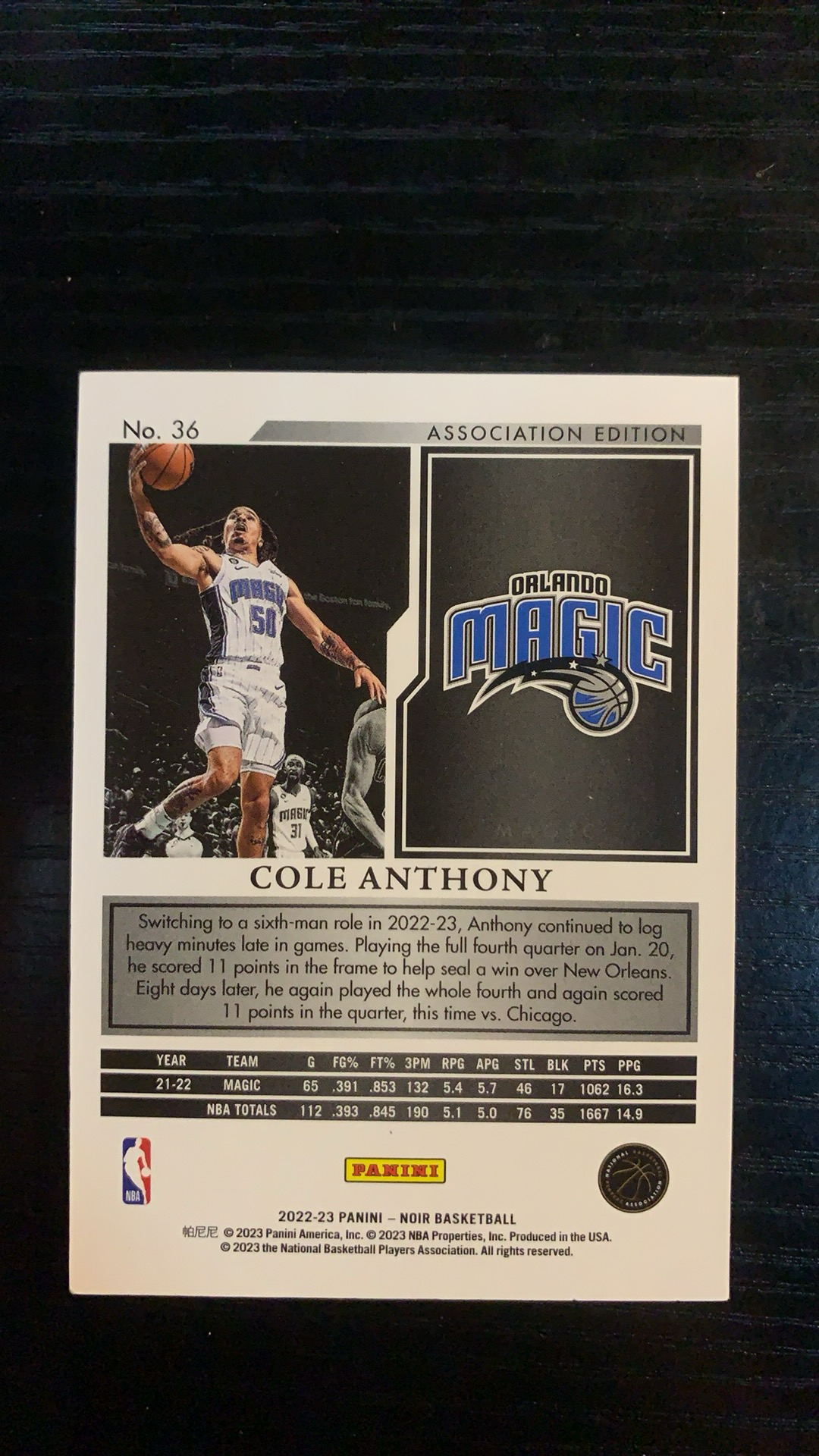 2022-23 PANINI NOIR COLE ANTHONY 科尔 安东尼 CA哥 34/99编 诺尔 BASE 魔术 篮球 队标 专收必备 用户