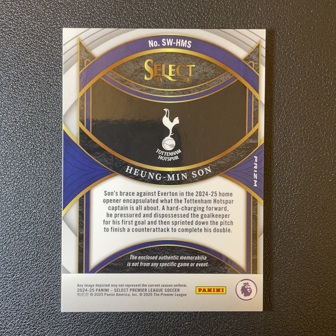2024-25 Panini Select Heung-Min Son 英超 热刺 孙兴慜 亚洲一哥 球衣 物料切割 银折 折射 轻印-S00038