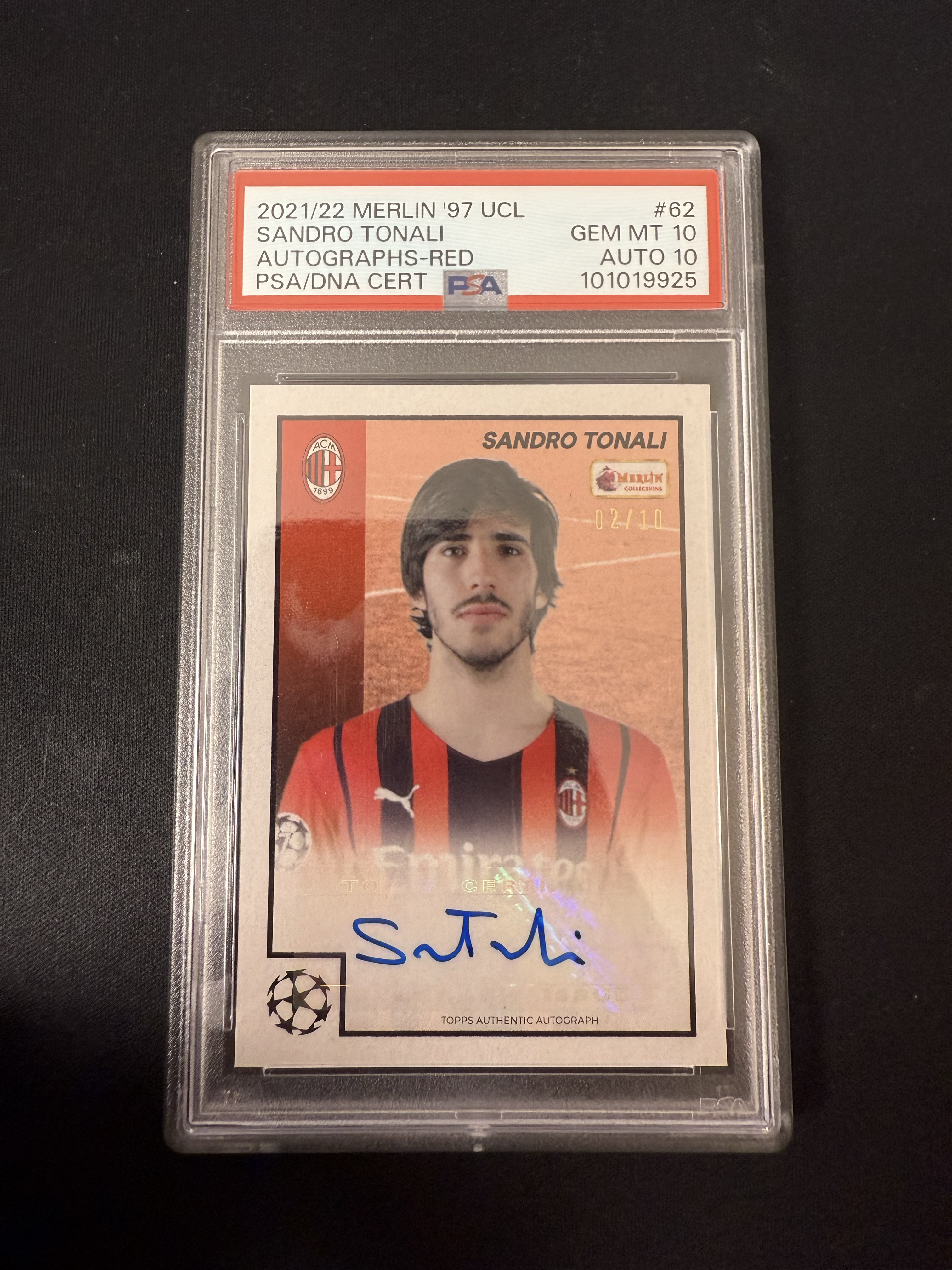 2023-24 Topps Merlin chrome Sandro Tonali 梅林 托纳利 02/10编 减同背 PSA卡品10签字10 双10!卡品如图 意大利 AC米兰 纽卡斯尔 中场核心