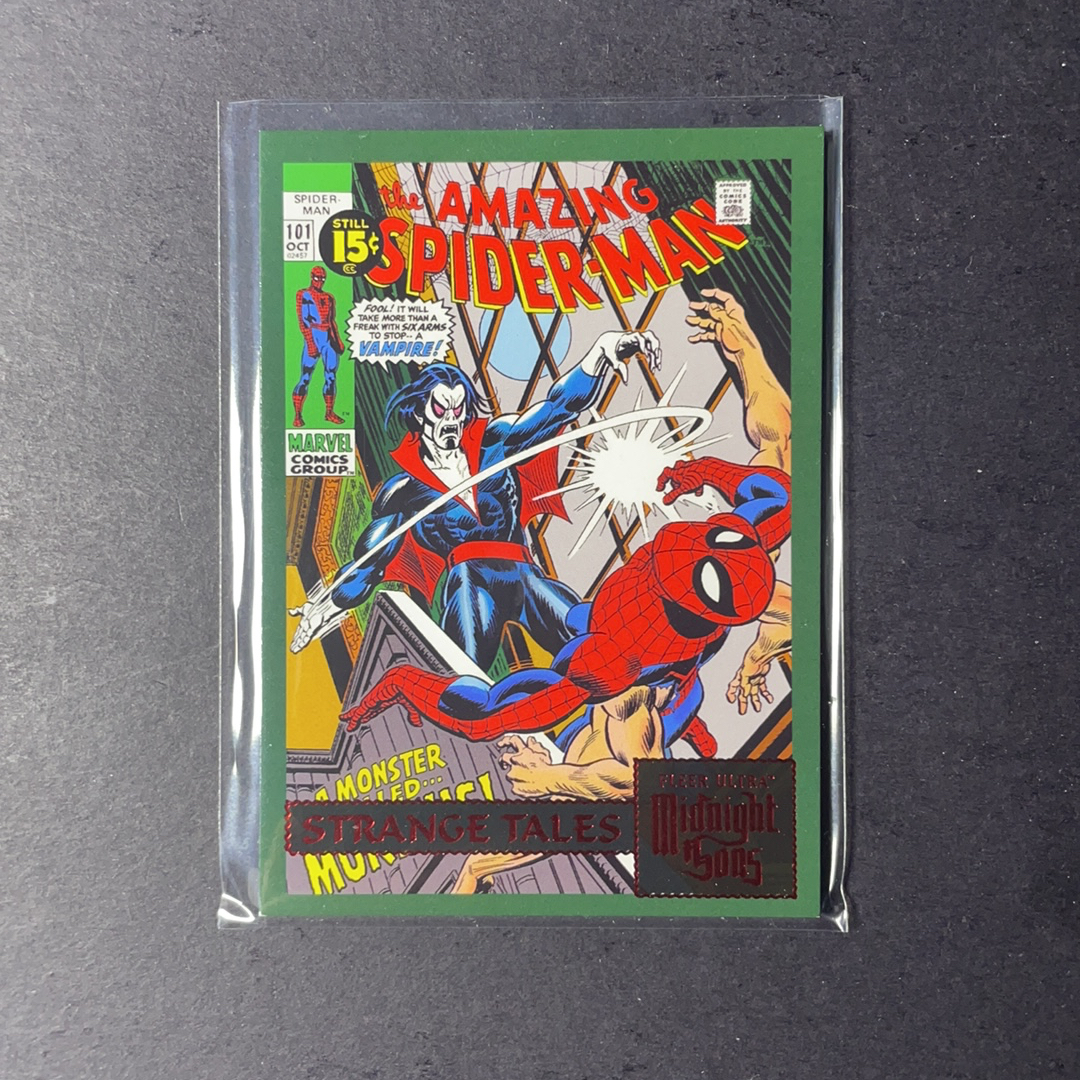 蜘蛛侠vs莫比亚斯 奇异故事漫画(奇异博士登场系列)封面特卡 红平行100编 ST8 2023 UD漫威漫画Fleer Ultra午夜之子