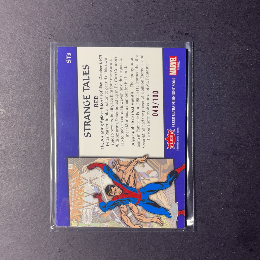 2024 Fleer Marvel (MCU) 午夜之子 蜘蛛侠vs莫比亚斯 奇异故事漫画(奇异博士登场系列)封面特卡 红平行100编 ST8 2023 UD漫威漫画Fleer Ultra午夜之子
