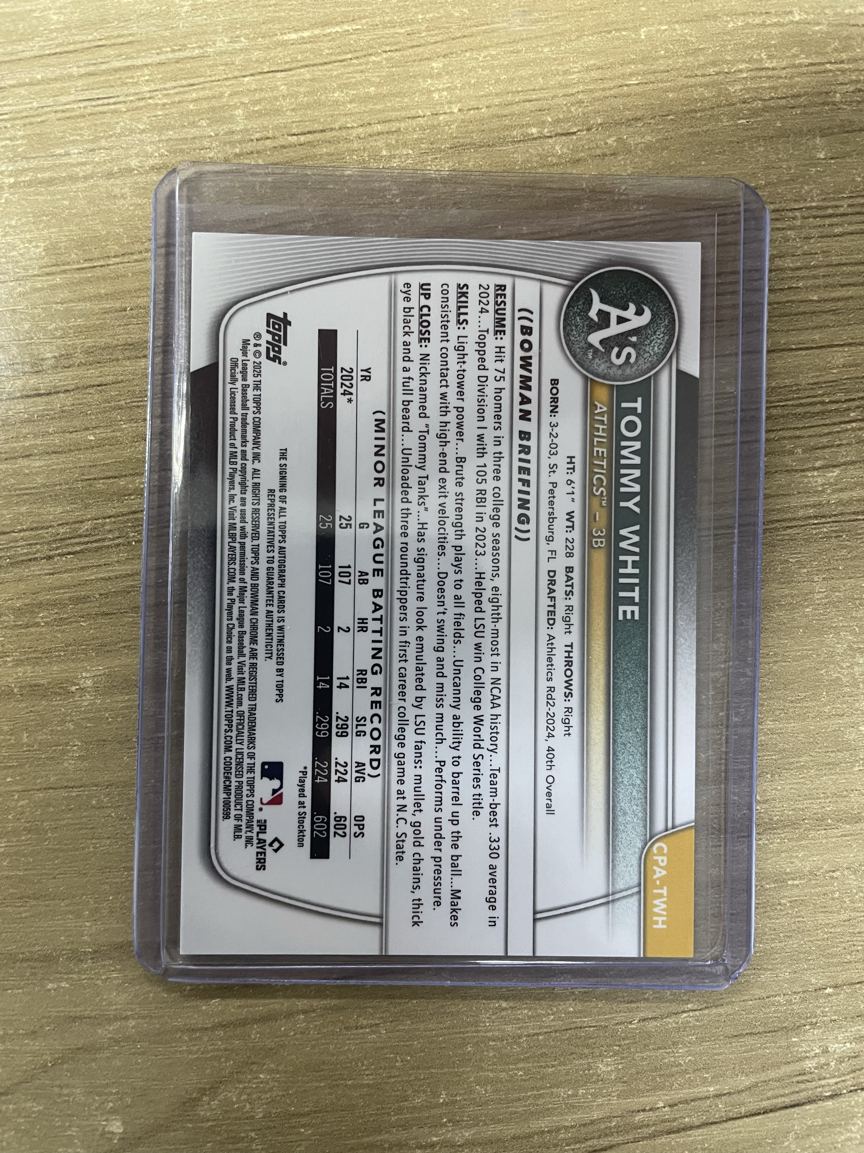 2025 Topps Bowman MLB(棒球) 奥克兰运动家 托米.怀特(Tommy White) 1ST 新秀 签字卡 碎花圆点折平行(限量299)卡签!