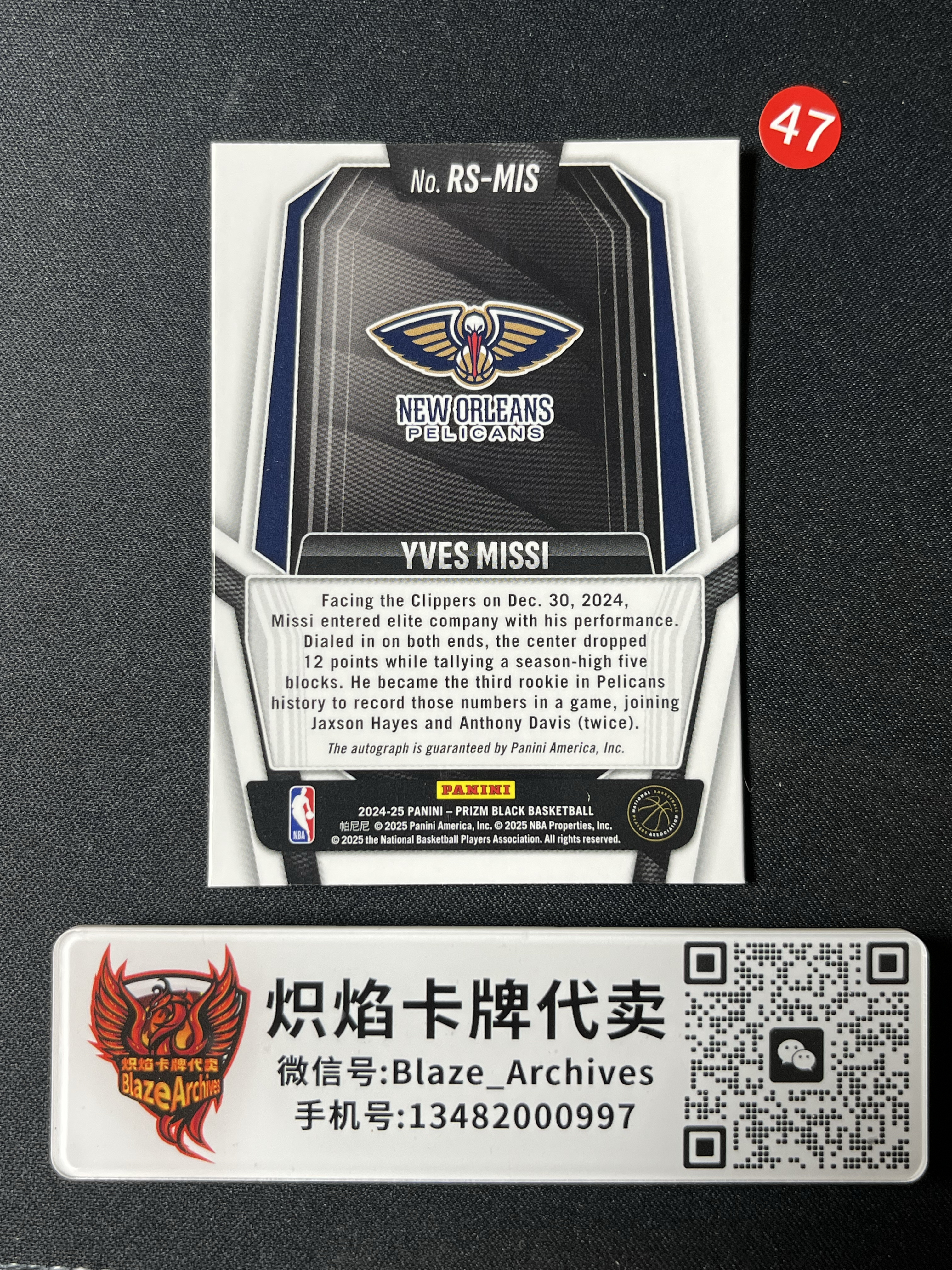 【卡品】一般通行品以上,如无说明则为通行品,艺术家和完美主义者勿扰,请理解通行品的卡品要求(例如国宝,imm,Noir,等系列老卡厚卡轻微小白边白角,镜面卡或薄卡的细微不明显小划痕,Prizm折射系列不明显的印刷线等,评级卡或原封砖外壳上的划痕和磨损以及内壳灰尘,潮湿雾气不属于卡品争议问题范畴内,Lot打包商品均不保证卡品!)单卡如有明显瑕疵会提供文字或照片说明,再有疑问请私信我要细节图,如果不要图出价且拍下则视为接受卡品,恶意维权或退款将会拉黑投诉处理!