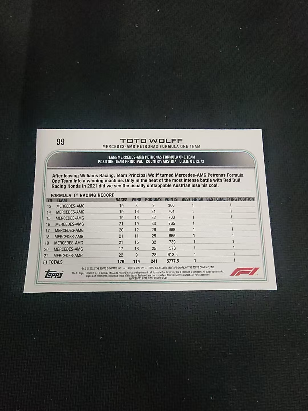 【汽水拍卖】2022 Topps Chrome F1 Toto Wolff 托托 沃尔夫 划痕 边角瑕疵 @99