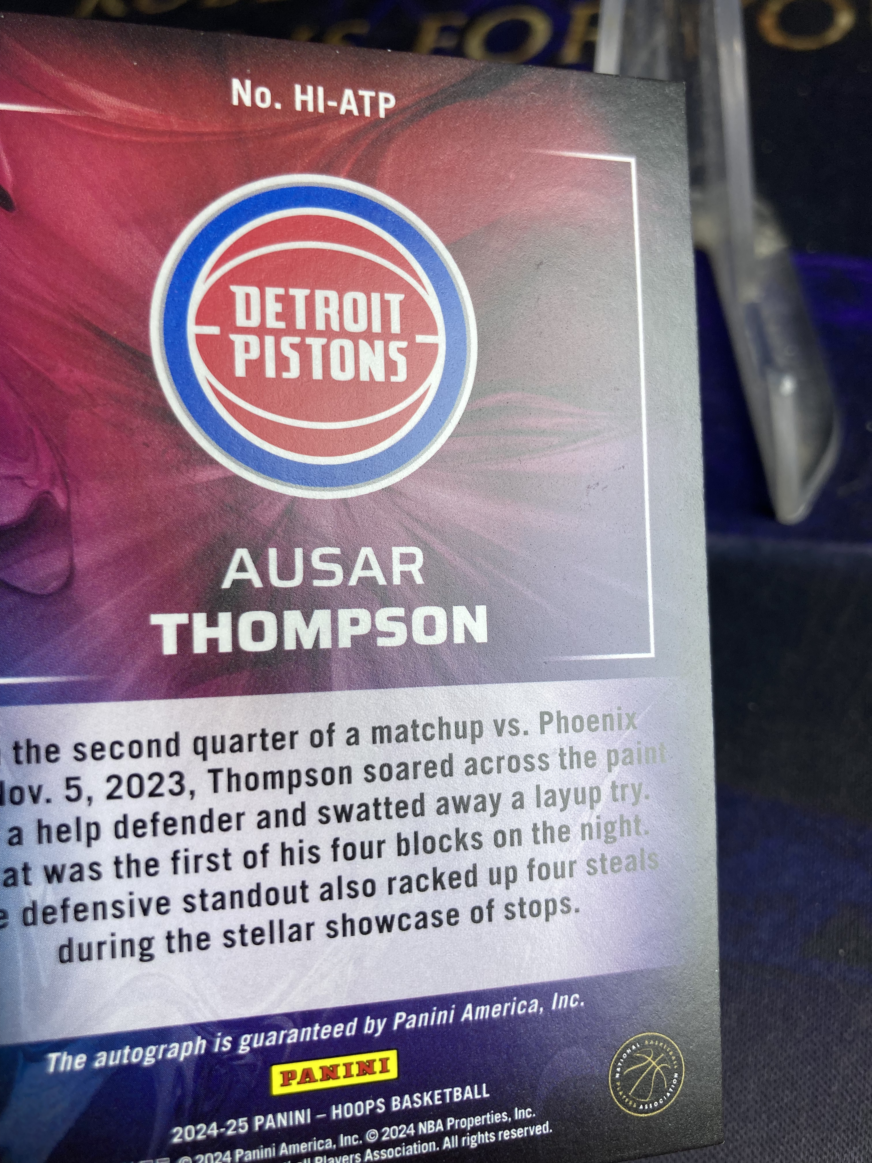 2024-25 Panini NBA Hoops Ausar Thompson 【星卡优转】hoops系列 活塞 奥萨尔 汤普森 签字 ink签 专收必备 微瑕如图 昊