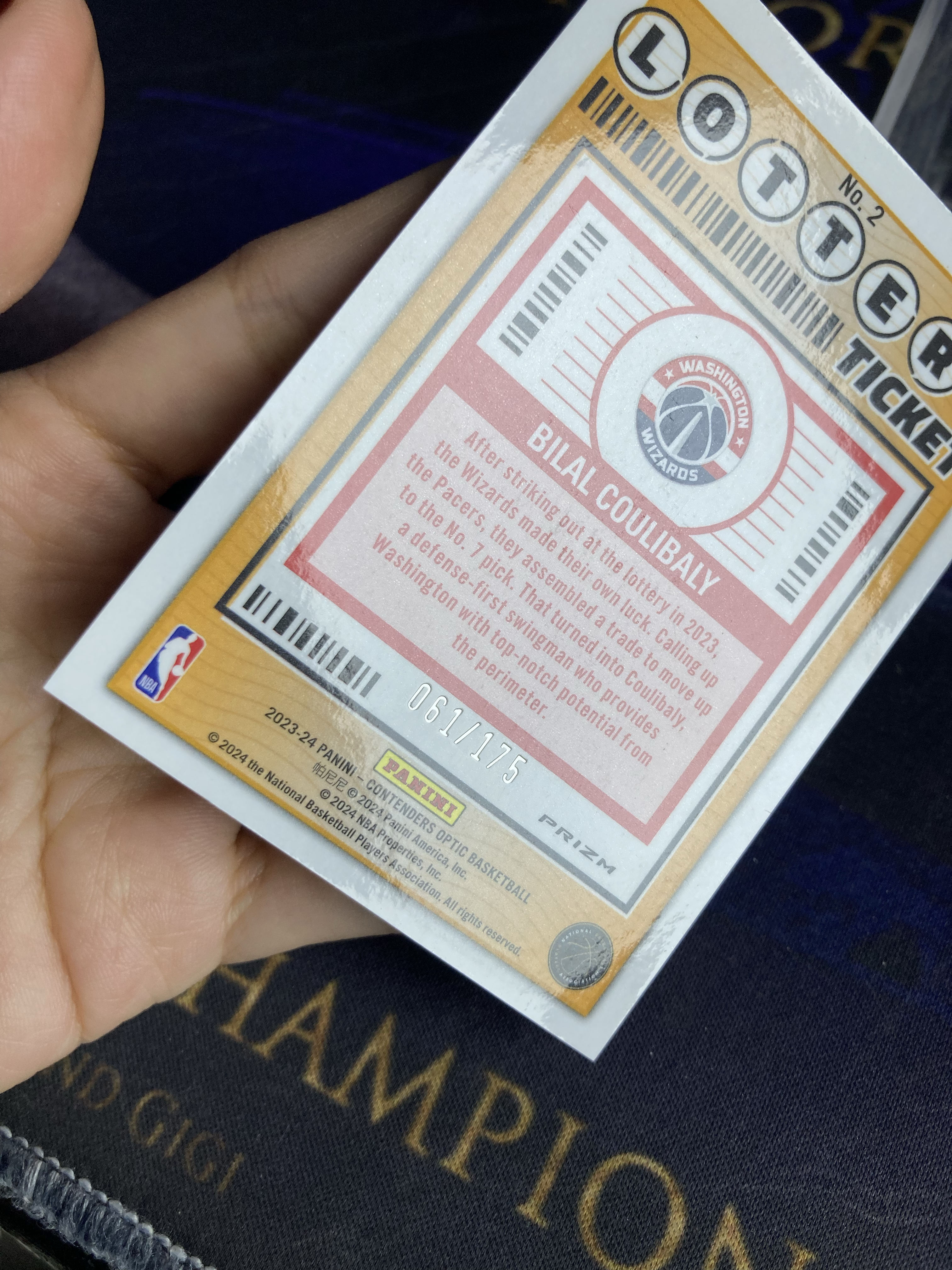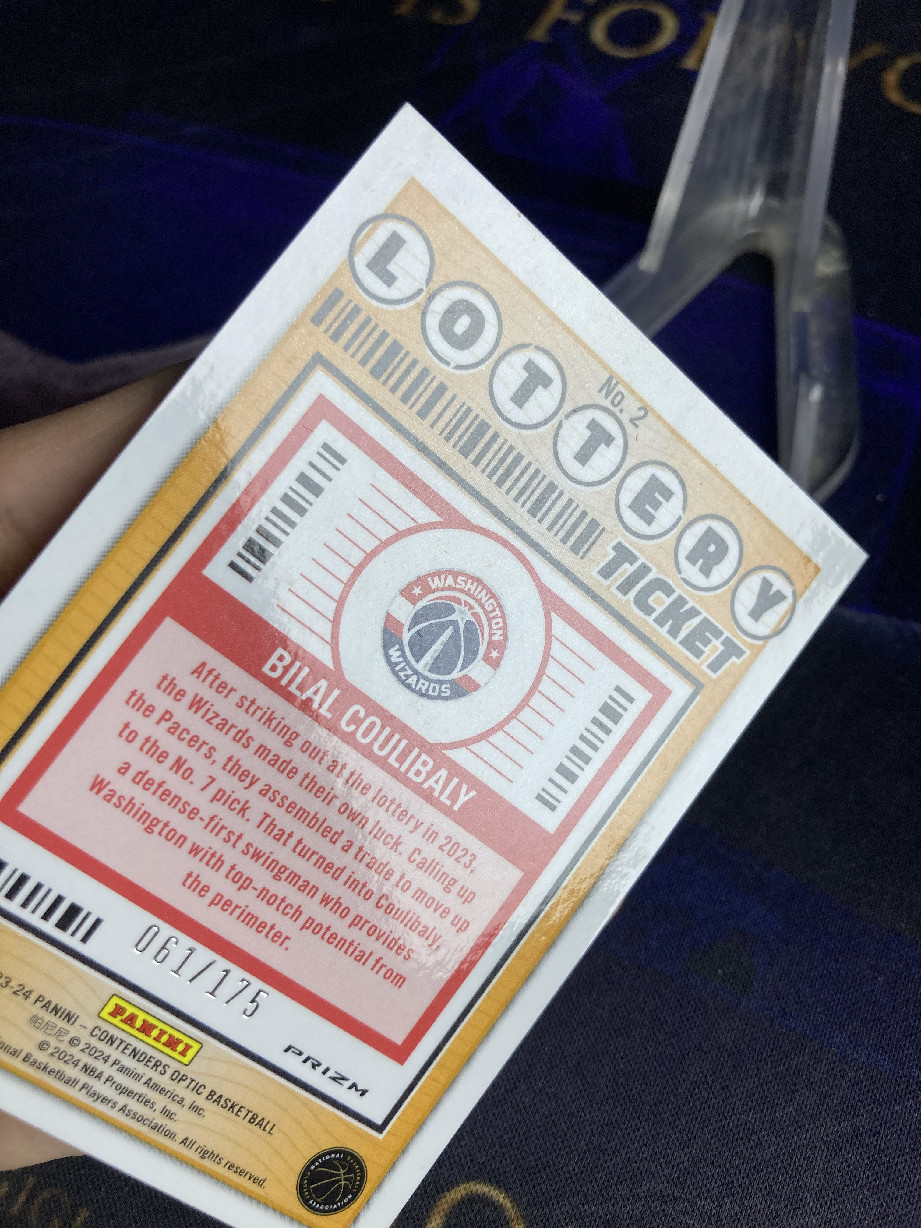 2023-24 Panini Contenders Optic Bilal Coulibaly RC 【星卡优转】球票OP 奇才 新秀RC 库利巴利 061/175编 乐透特卡 红碎冰折 微瑕如图 昊