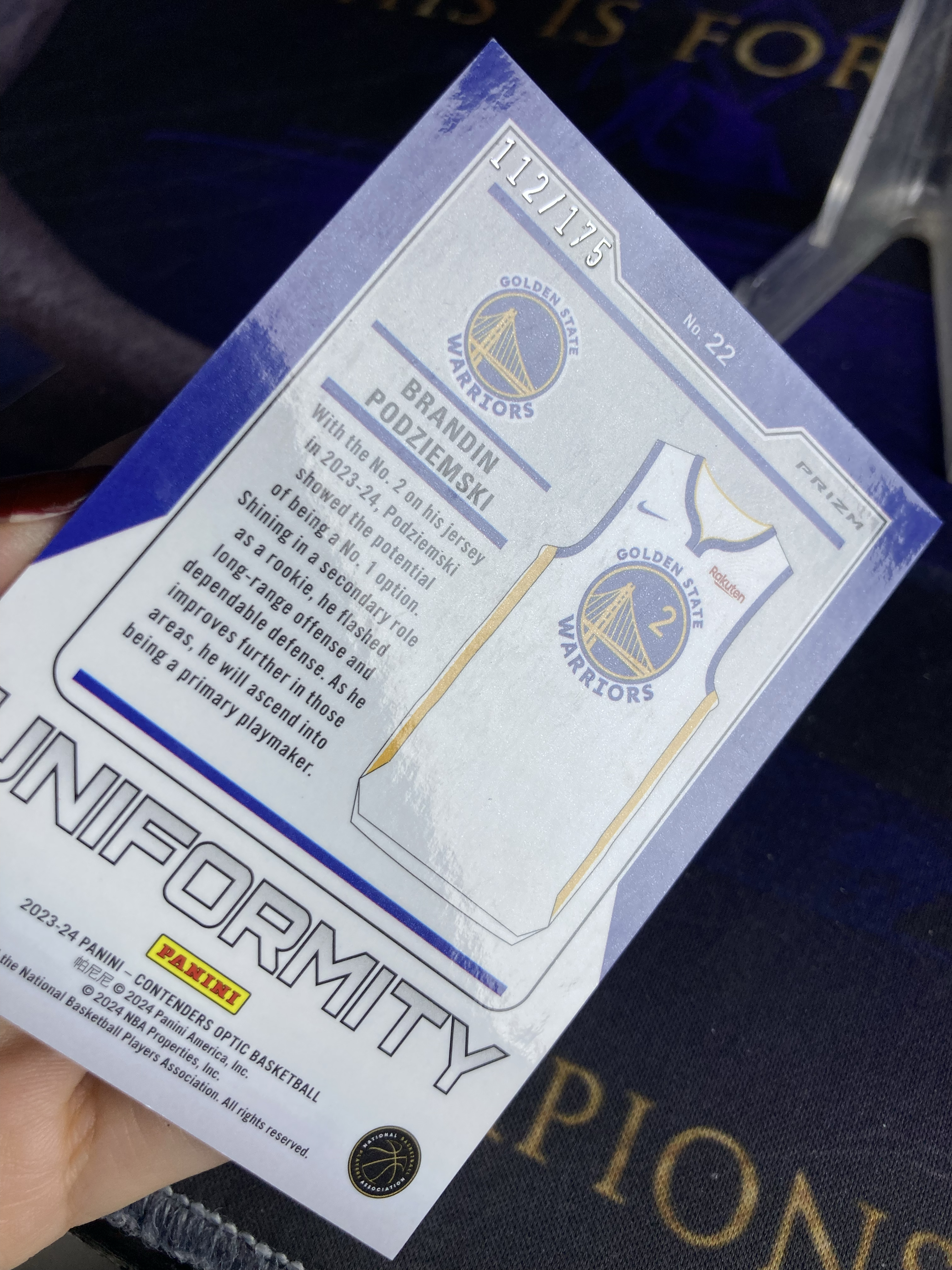 2023-24 Panini Contenders Optic Brandin Podziemski RC 【星卡优转】球票OP 勇士 新秀 波杰姆斯基 112/175编 小背心红碎冰折 微瑕如图 昊