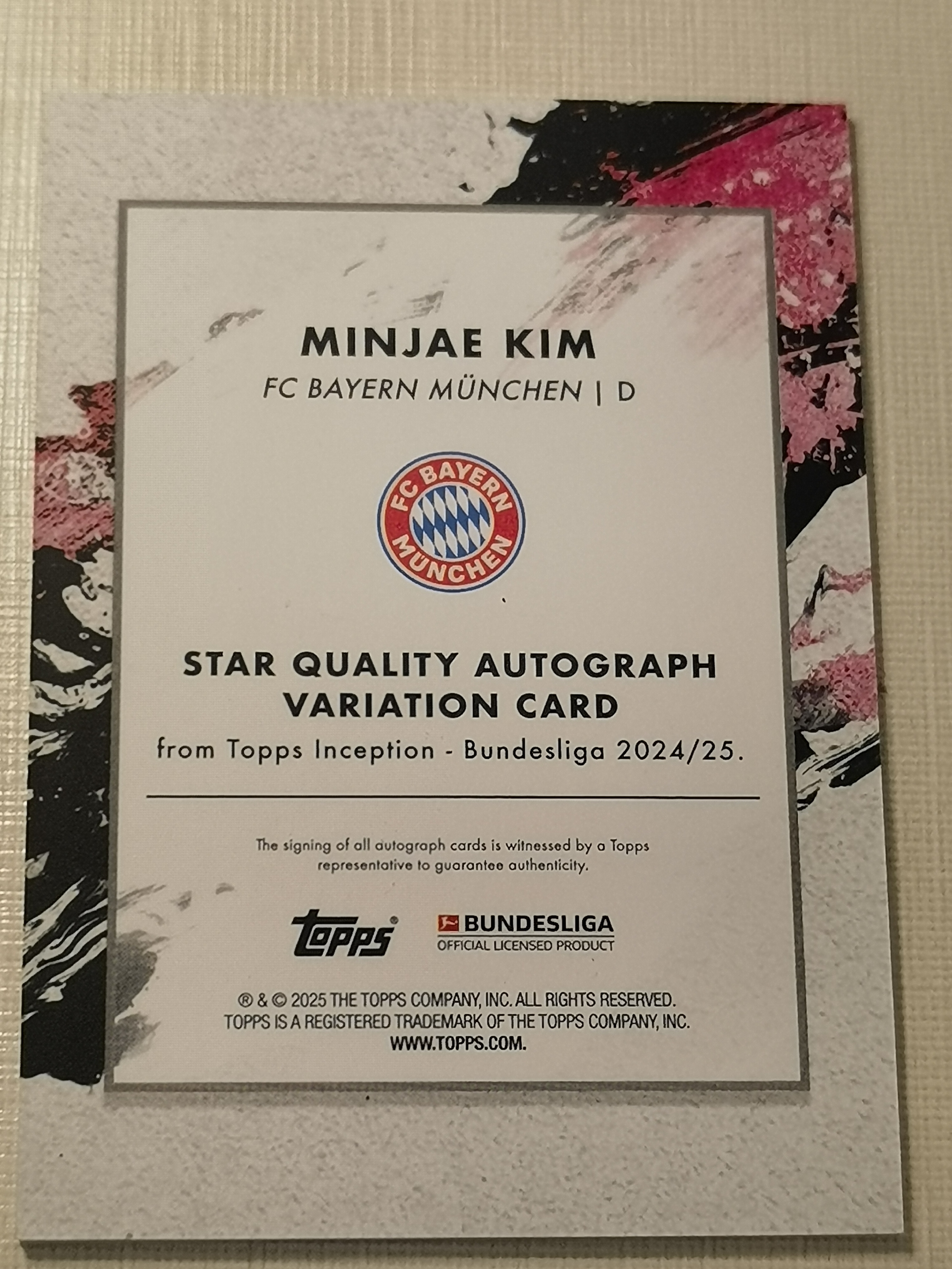 2024-25 Topps inception Kim Kacey 德甲盗梦空间 拜仁 金玟哉 25/25编 橙平行 签字 韩国🇰🇷 Korea 尾编 微瑕如图