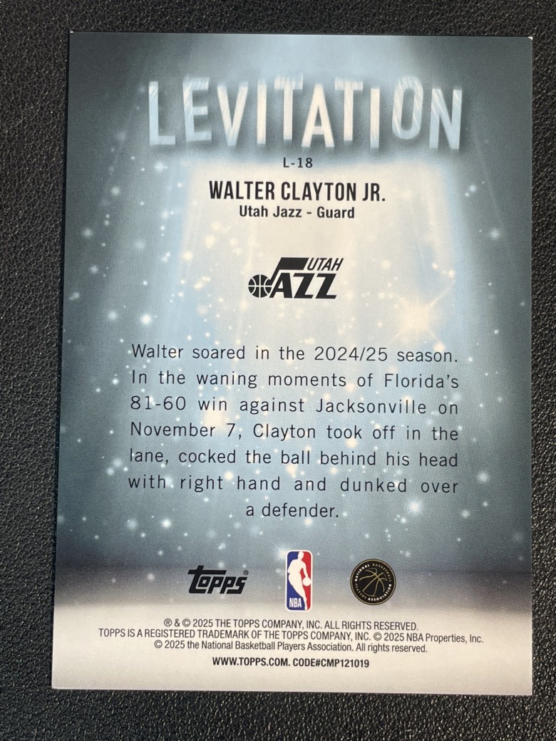 2025 Topps NBA Flagship Walter Clayton Jr. RC 284 沃尔特 克莱顿 爵士 Levitation 滞空特卡 折射 绿折 99编 微瑕如图 卡品如图 封印