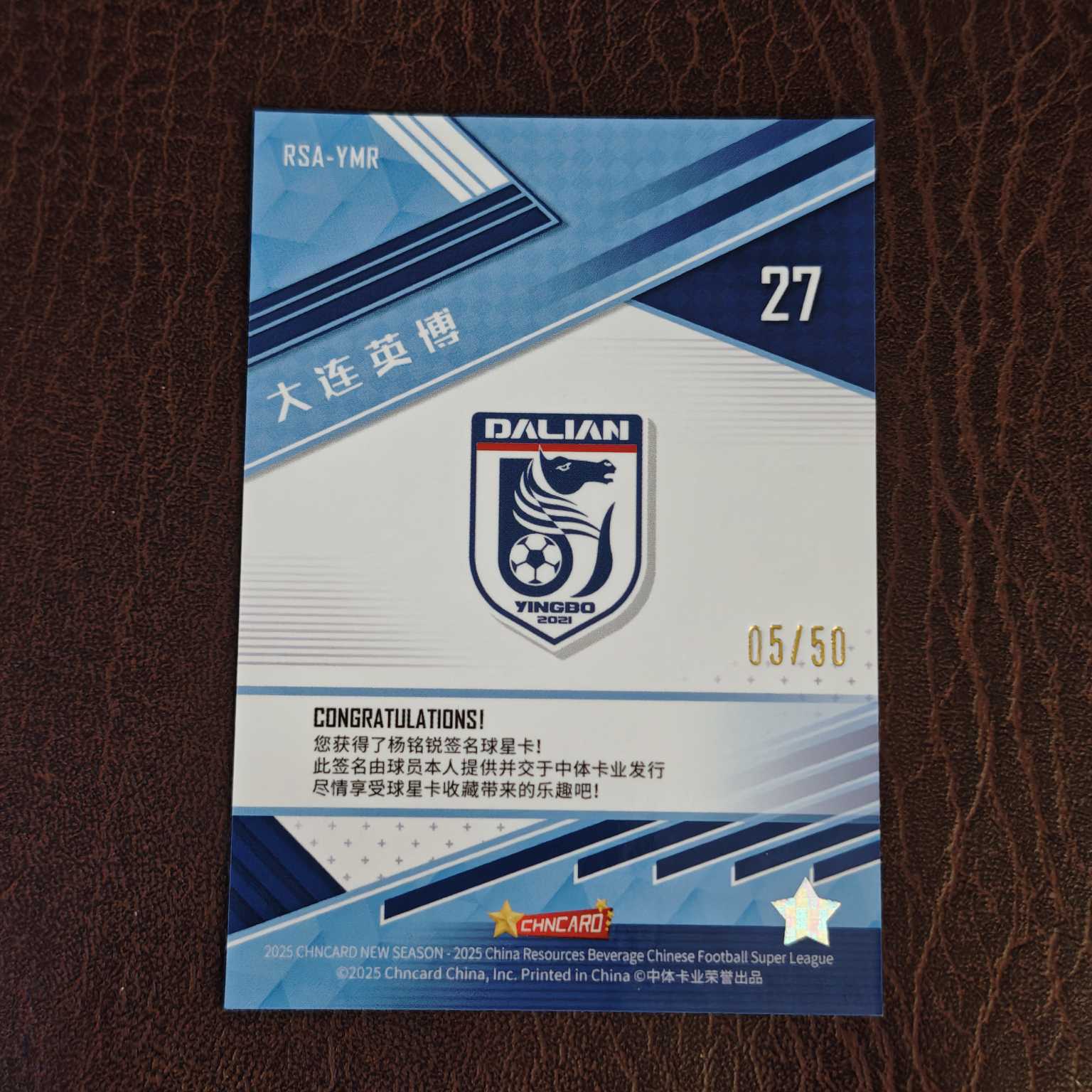 【HY拍卖】2025 中体卡业 CSL NEW SEASON(中超新赛季)大连英博 杨铭锐 1st新秀 明日星签字 银折 折射 05/50编 专收必备 不保卡品