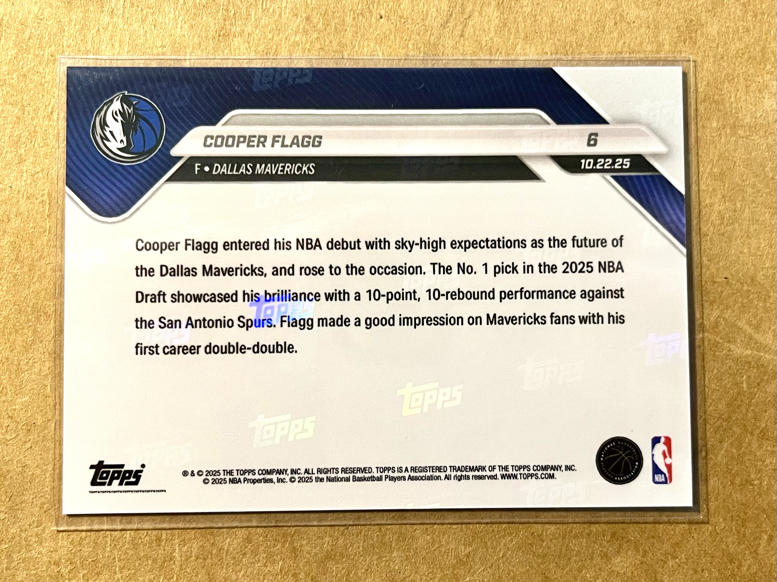 2025 Topps 【蓝矿】 Cooper Flagg 库珀·弗拉格 RC新秀 Topps now系列 2025NBA常规赛 独行侠 NBA职业生涯首秀即双10表现!