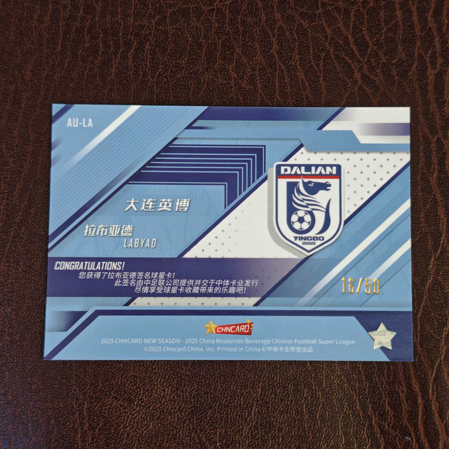 【HY拍卖】2025 中体卡业 CSL NEW SEASON(中超新赛季)大连英博 Labyad 拉布亚德 拉布布 交错空间签字 铜折 折射 16/50编 专收必备 不保卡品