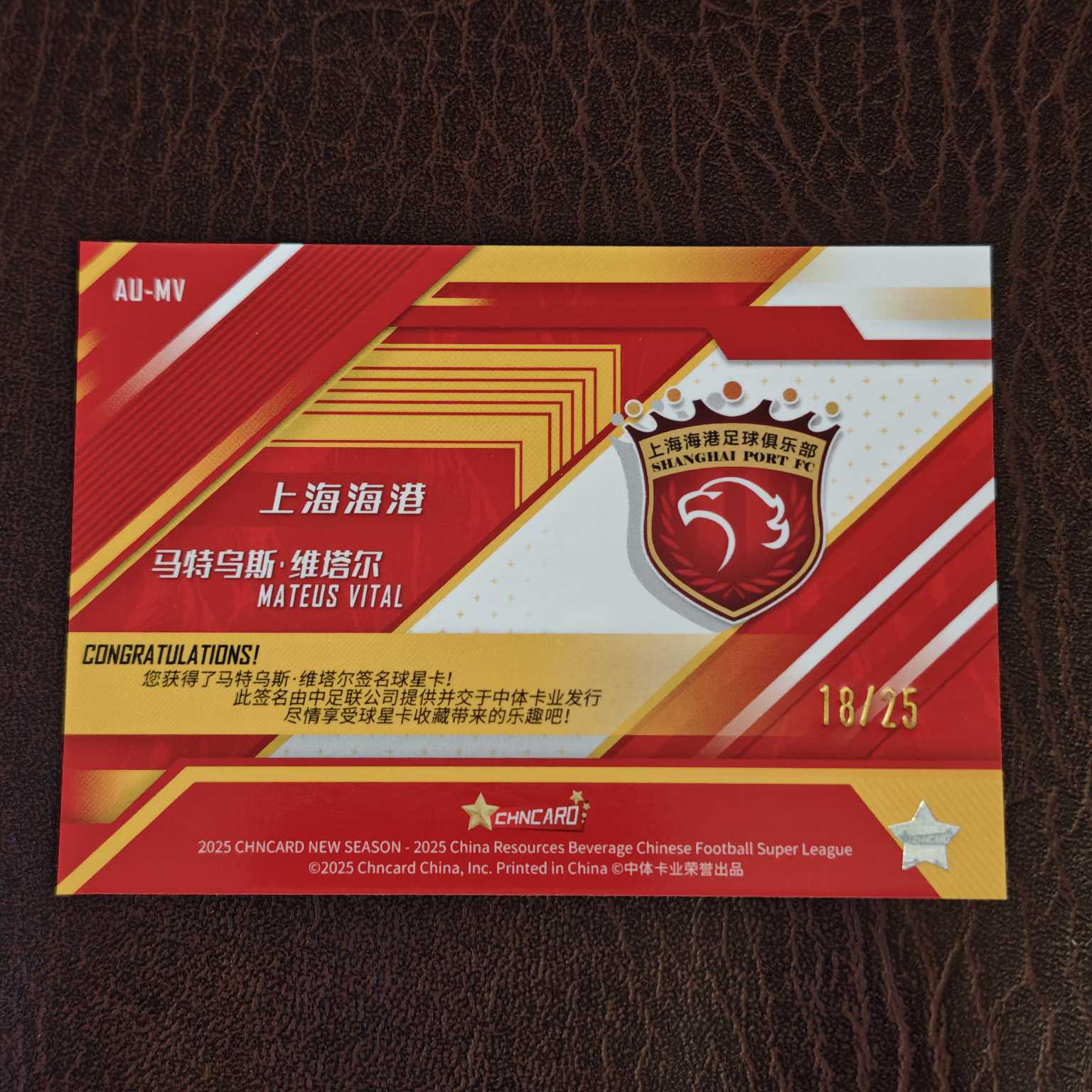 【HY拍卖】2025 中体卡业 CSL NEW SEASON(中超新赛季)18/25编 低编 上海海港 维塔尔 交错空间签字 银折 折射 专收必备 不保卡品