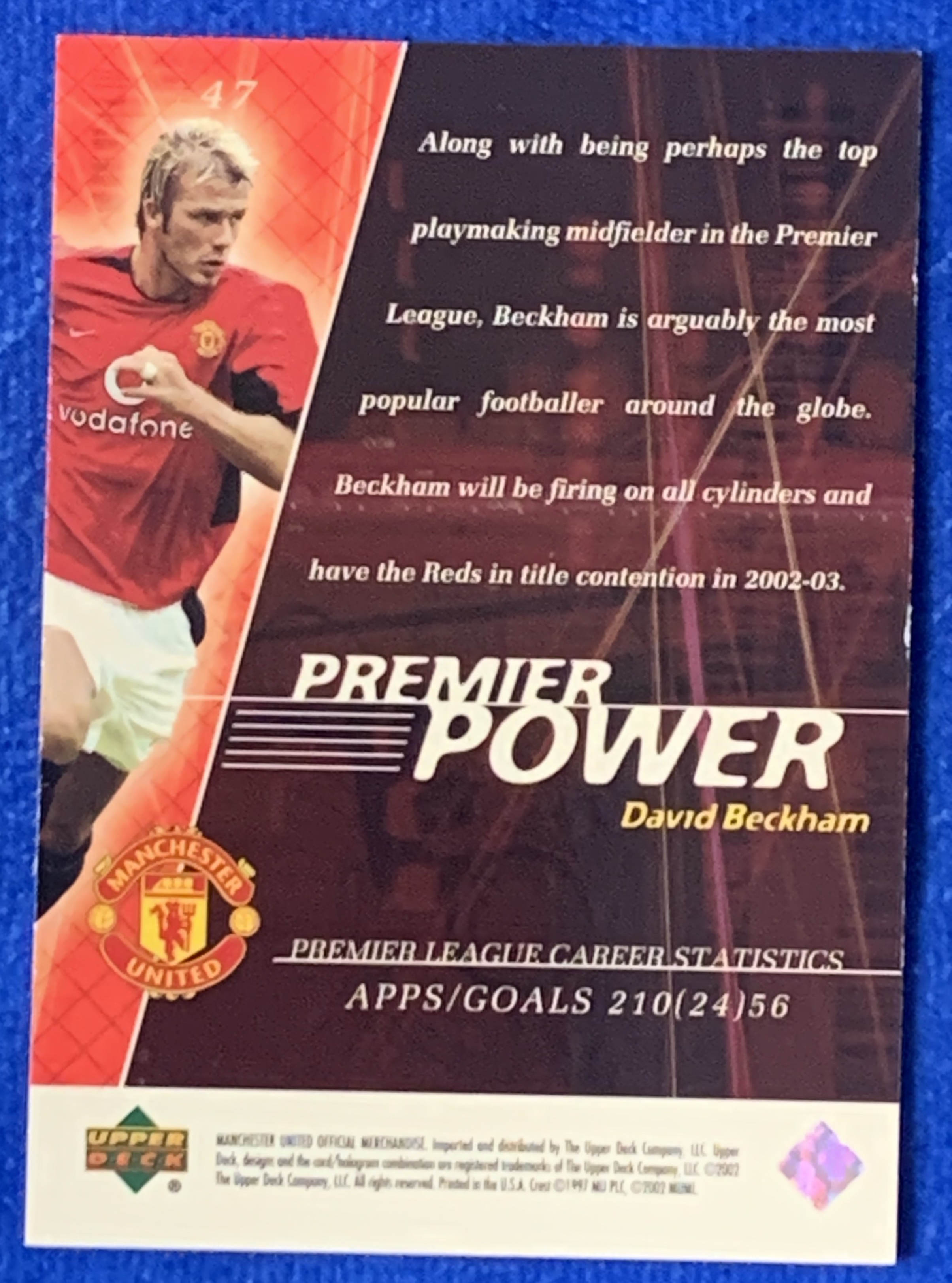 2002 Upper Deck Manchester United David Beckham 亚德英超力量特卡 曼联 贝克汉姆 92班 三冠王 英格兰England队长 圆月弯刀 皇家马德里 巴黎