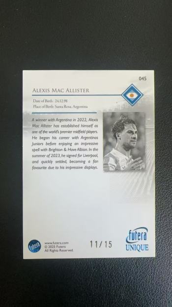 ![2025 Futera Futera Unique Alexis Mac Allister [年轻人球星卡]接代拍 温斯 福特拉 麦卡利斯特 11/15编 不保卡品 拍前看描述](https://images.cardhobby.com/793b9a1097f1dd65d1add181e76e16471764487726591.jpg)