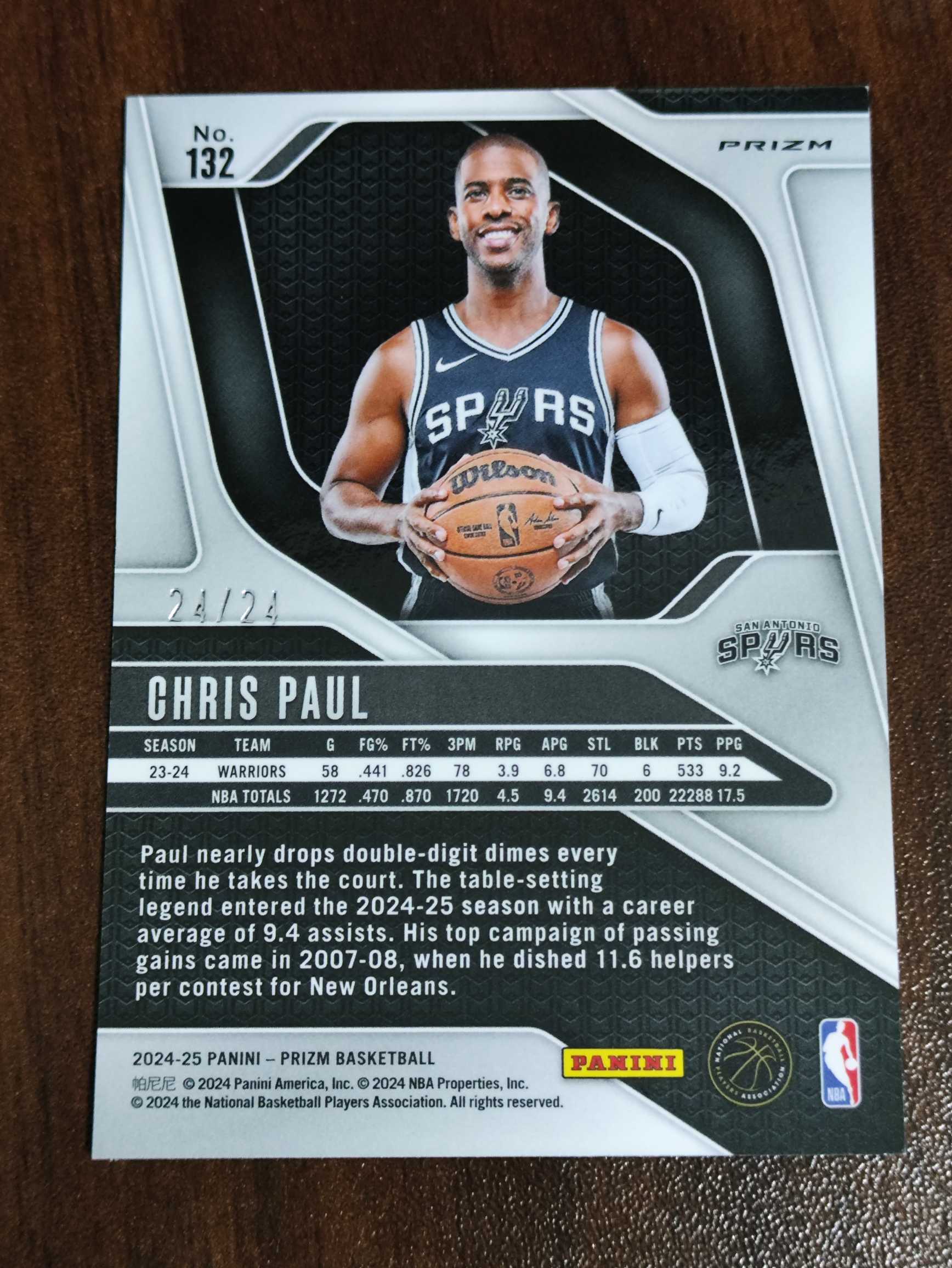 2024-25 Panini Prizm Chris Paul 克里斯 保罗 cp3 prizm 24编 24/24 尾编 金碎花 金闪光 金折 金点点 gold sparkle 篮球 NBA