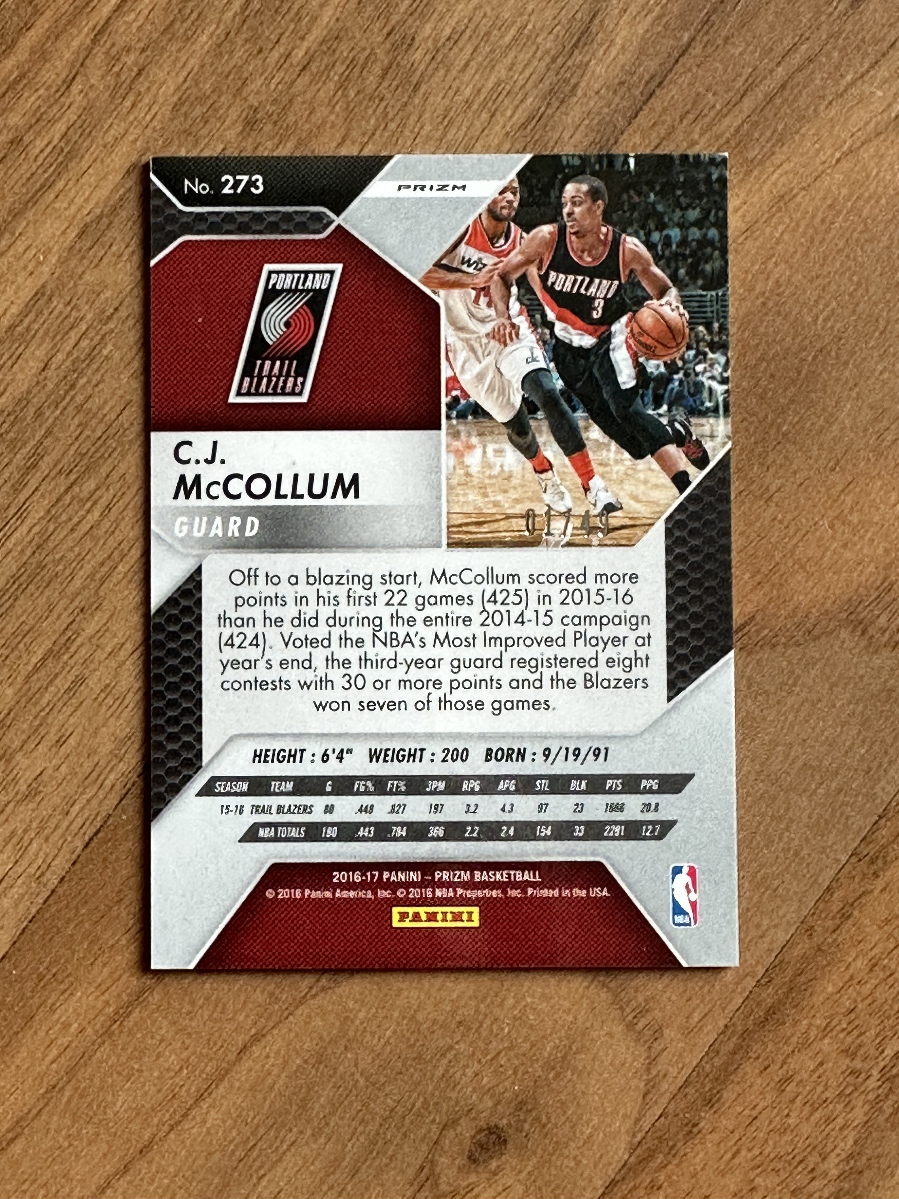 2016-17 Panini prizm CJ McCollum CJ 迈克勒姆 麦科勒姆 麦考勒姆 prizm 系列 橙折 49编