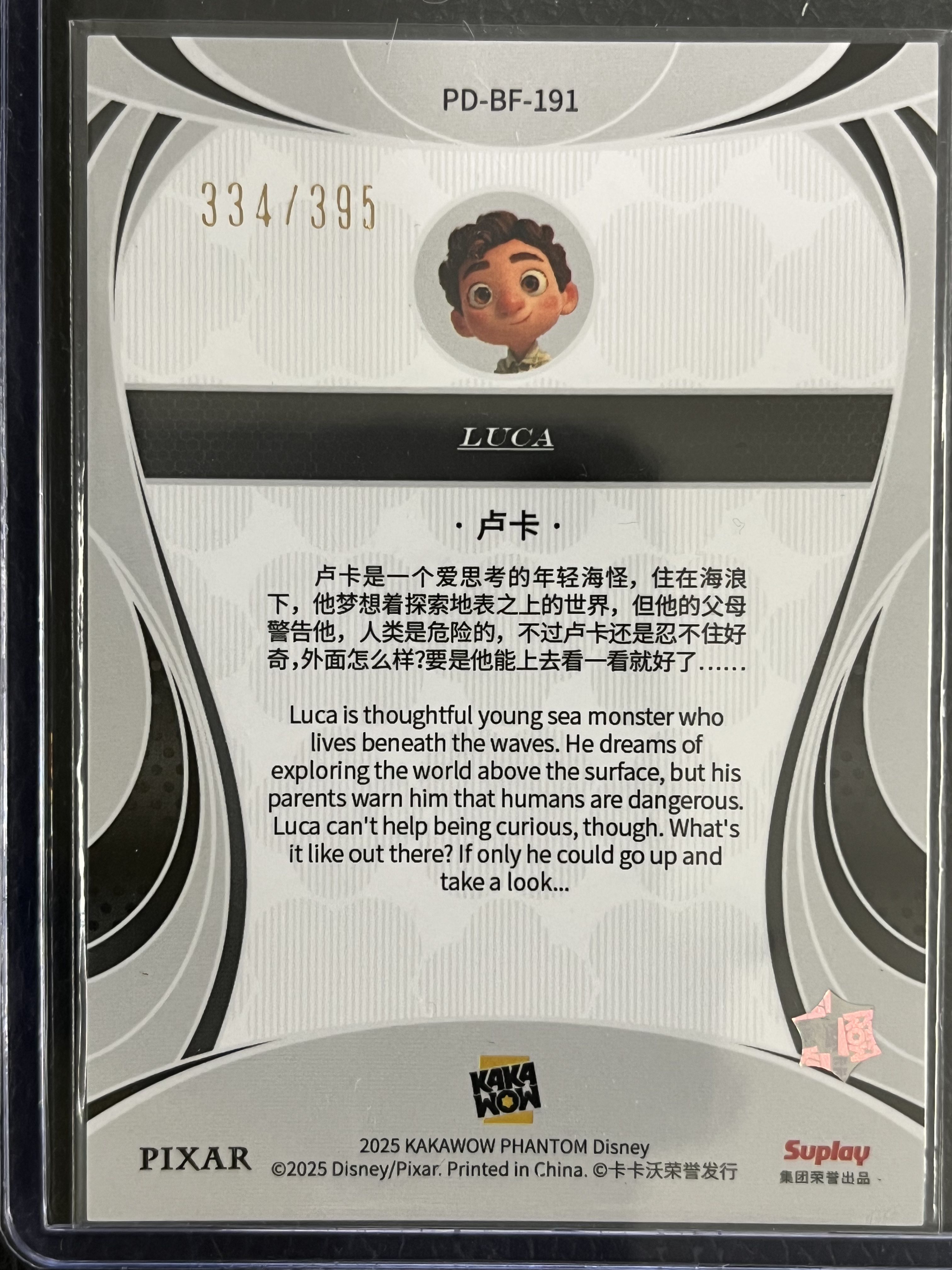 卡卡沃 2025 KAKAWOW PHANTOM 迪士尼系列收藏卡 基础卡-四叶草折 陆Y(30B)334/395编 卡号191 卢卡 Luca