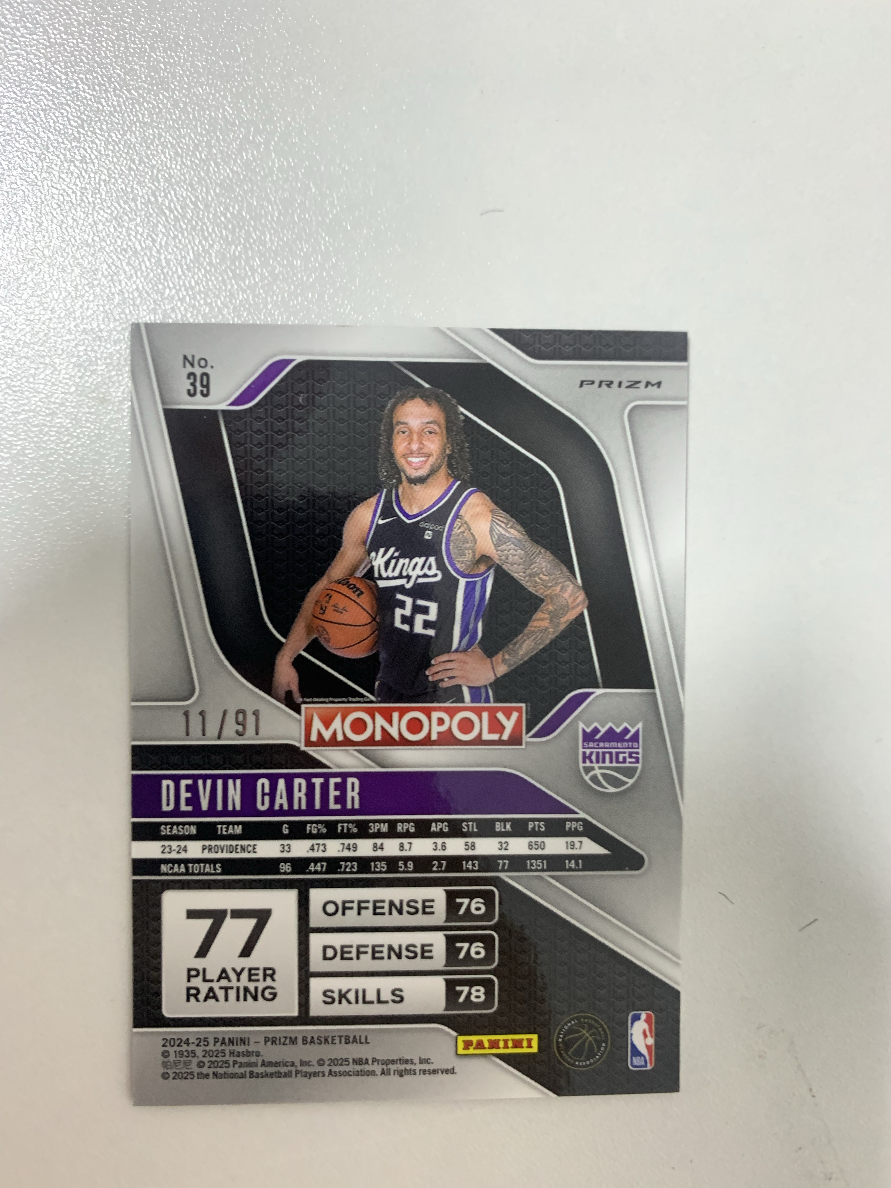 2024-25 PANINI PRIZM DEVIN CARTER 德文 卡特 新秀 RC 紫折 国王 篮球 11/91编 专收必备 空白