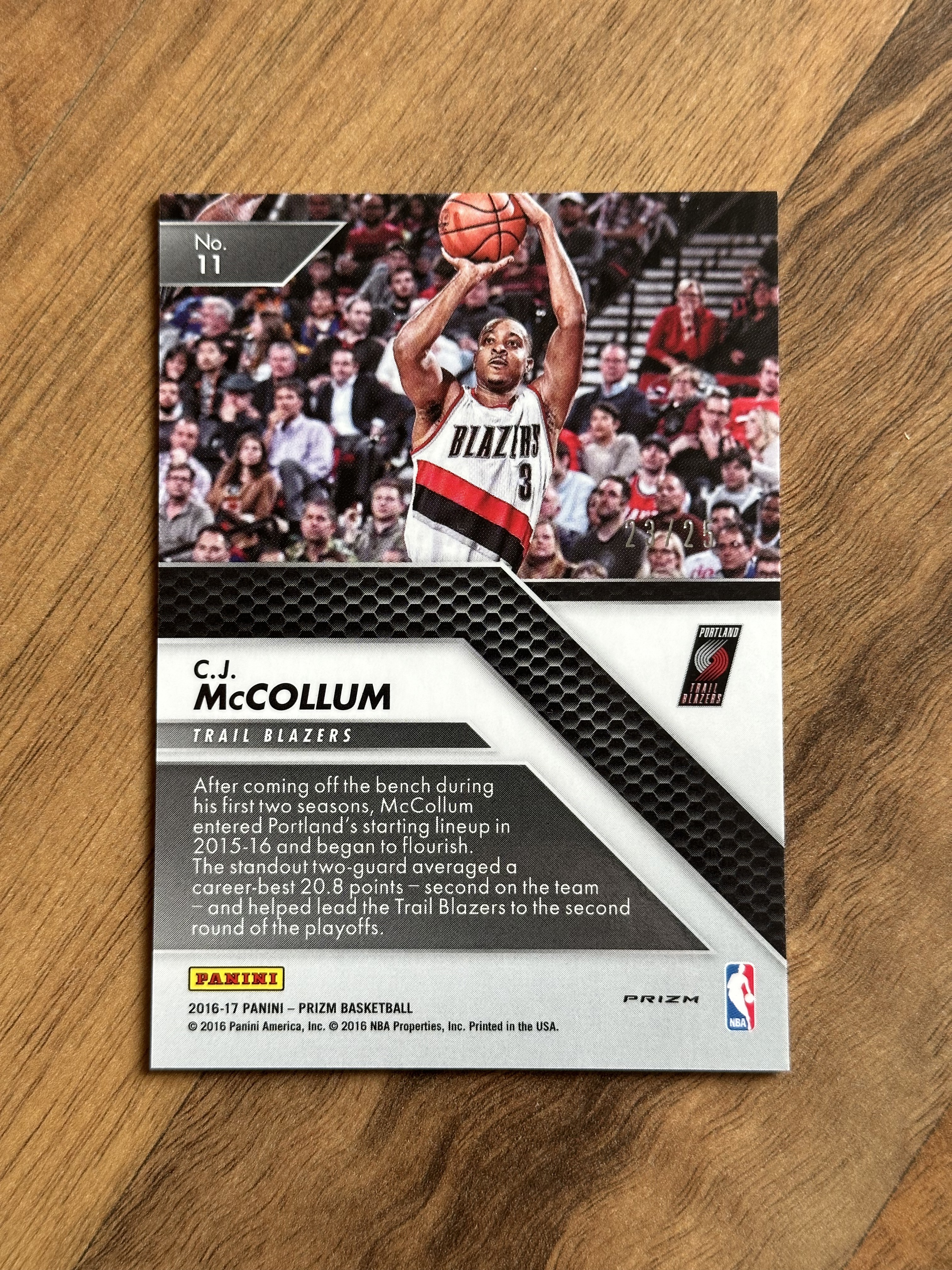 2016-17 Panini Prizm CJ McCollum CJ 迈克勒姆 麦科勒姆 麦考勒姆 prizm系列 水蓝折 25编