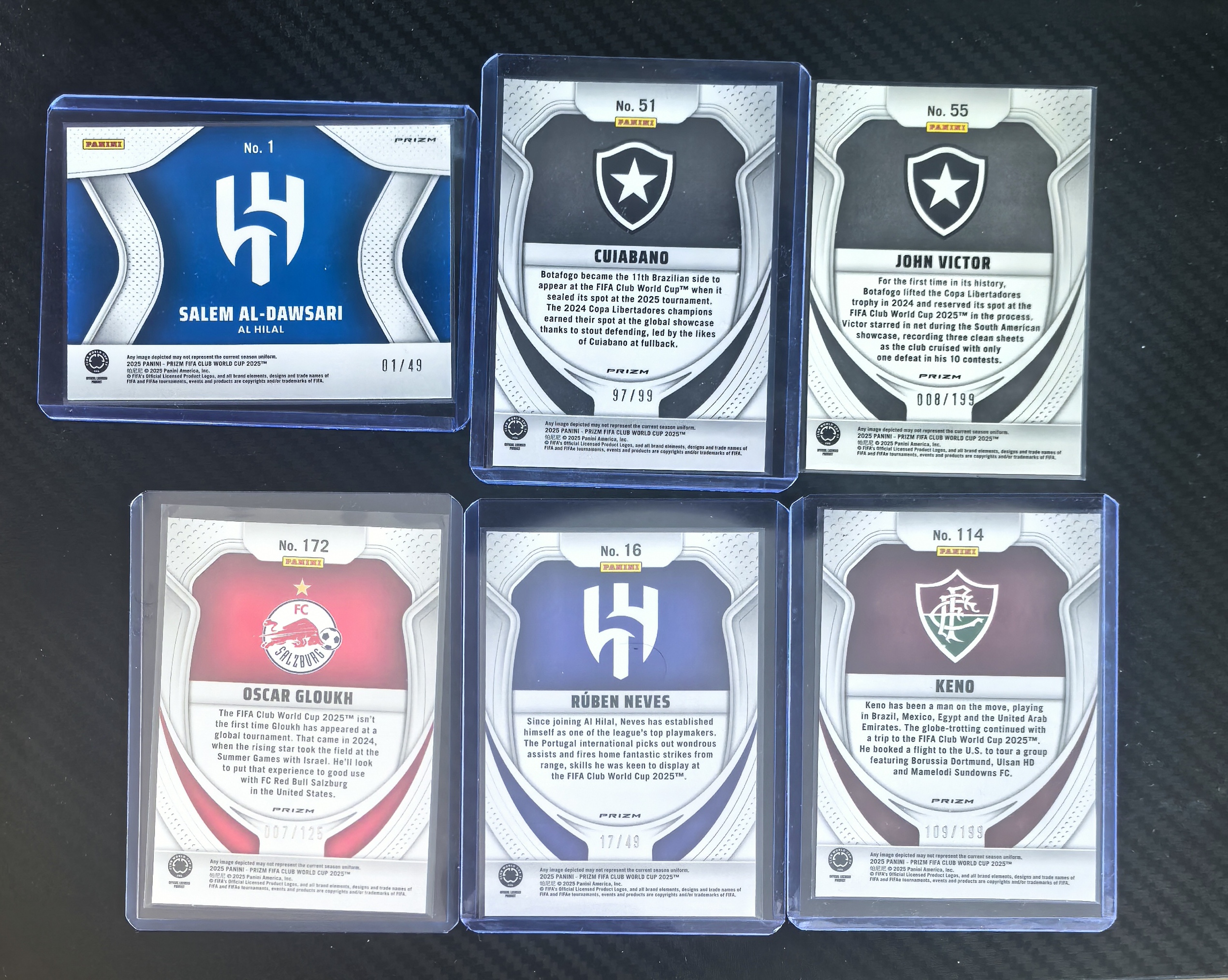 2025 Panini Prizm 世俱杯 利雅得新月 萨尔茨堡红牛 博塔弗戈 等 库亚巴诺 鲁本内维斯 格鲁赫 新秀 RC 49编 99编 125编 199编 折射 打包 lot 卡品不保