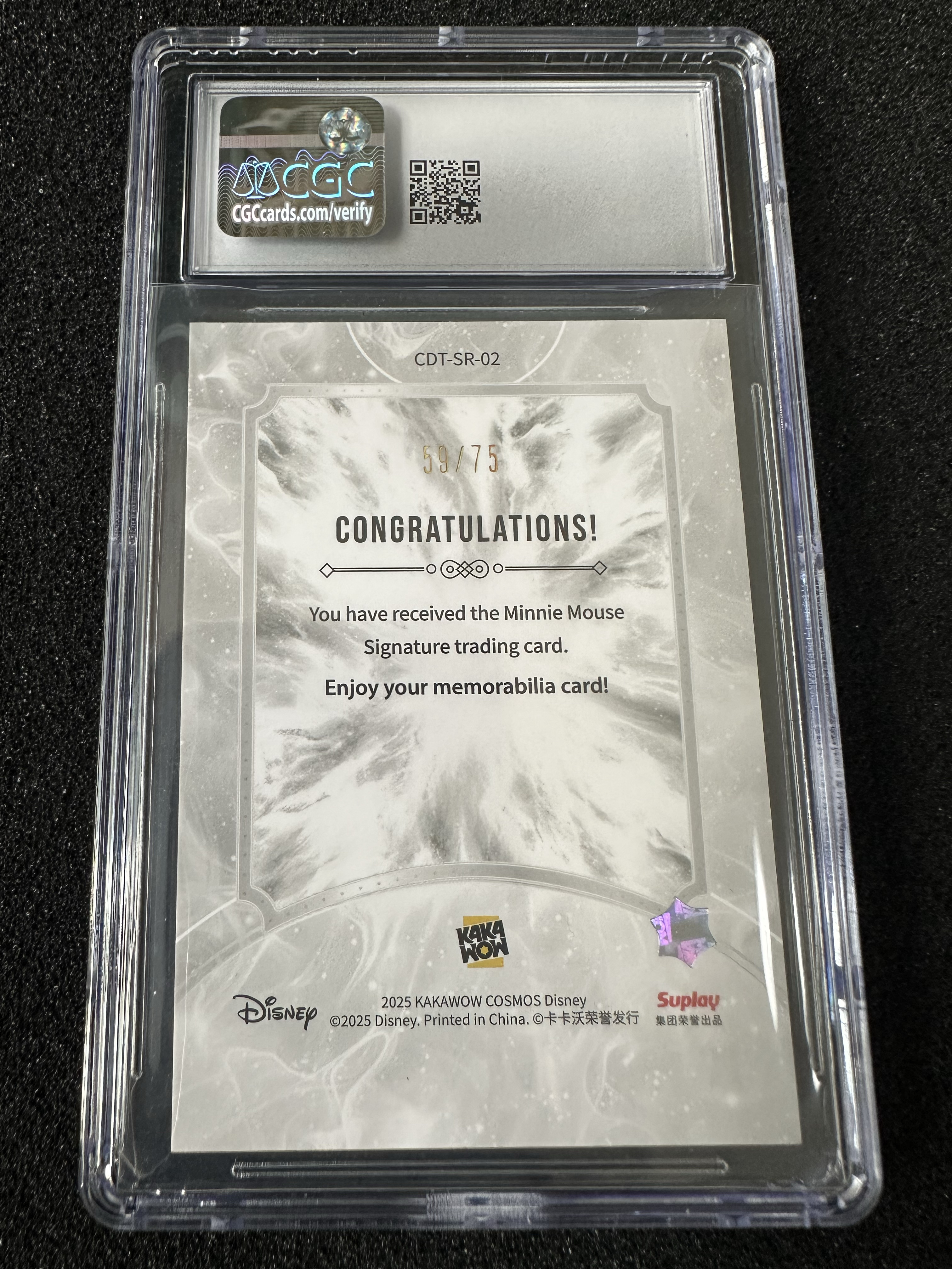 2025 KAKAWOW COSMOS Disney 卡卡沃 迪士尼系列收藏卡 /75编 红折 单签 签字卡 印签 米奇的女朋友 米妮 Minnie Mouse 评级卡 CGC8.5分