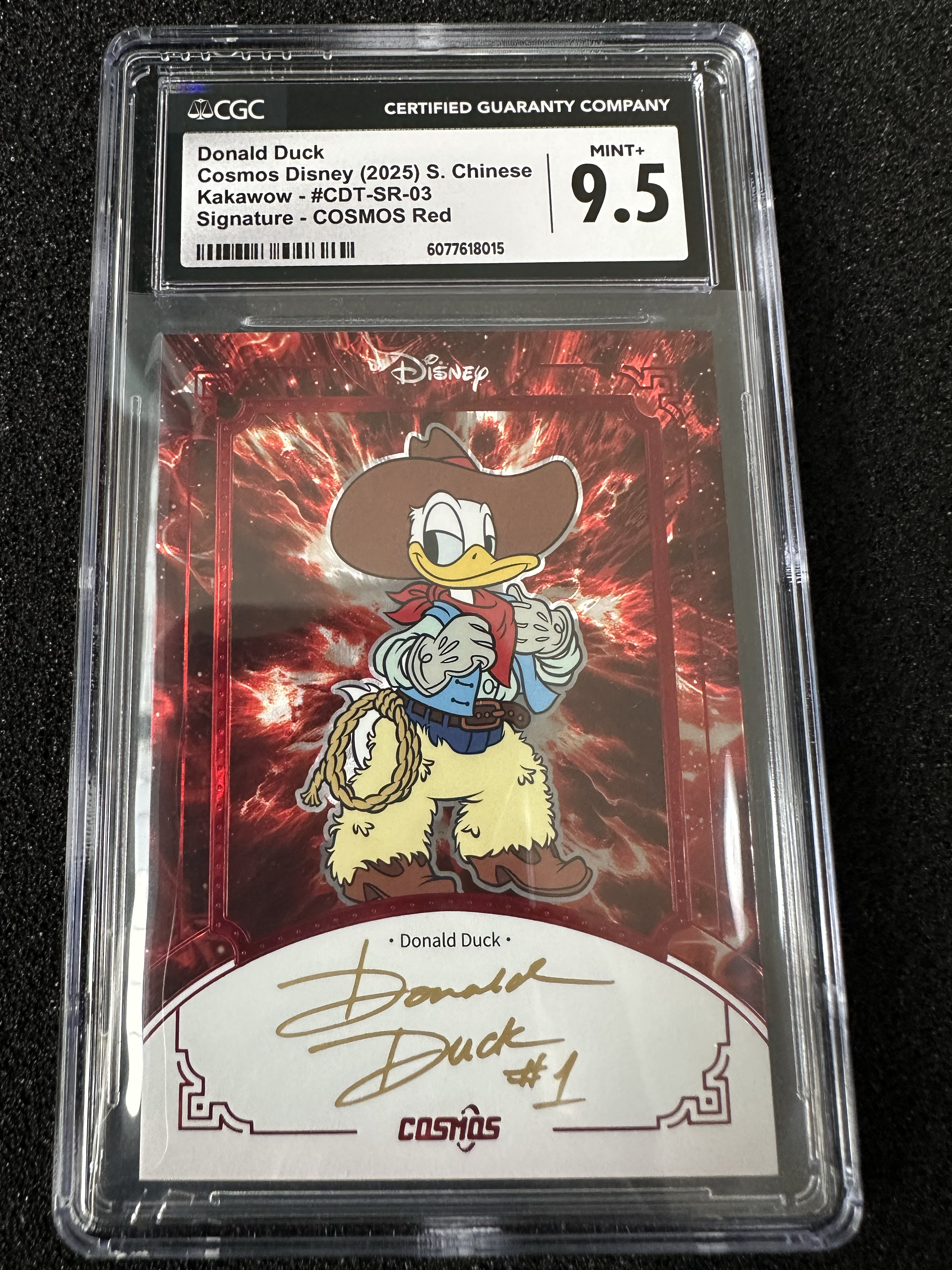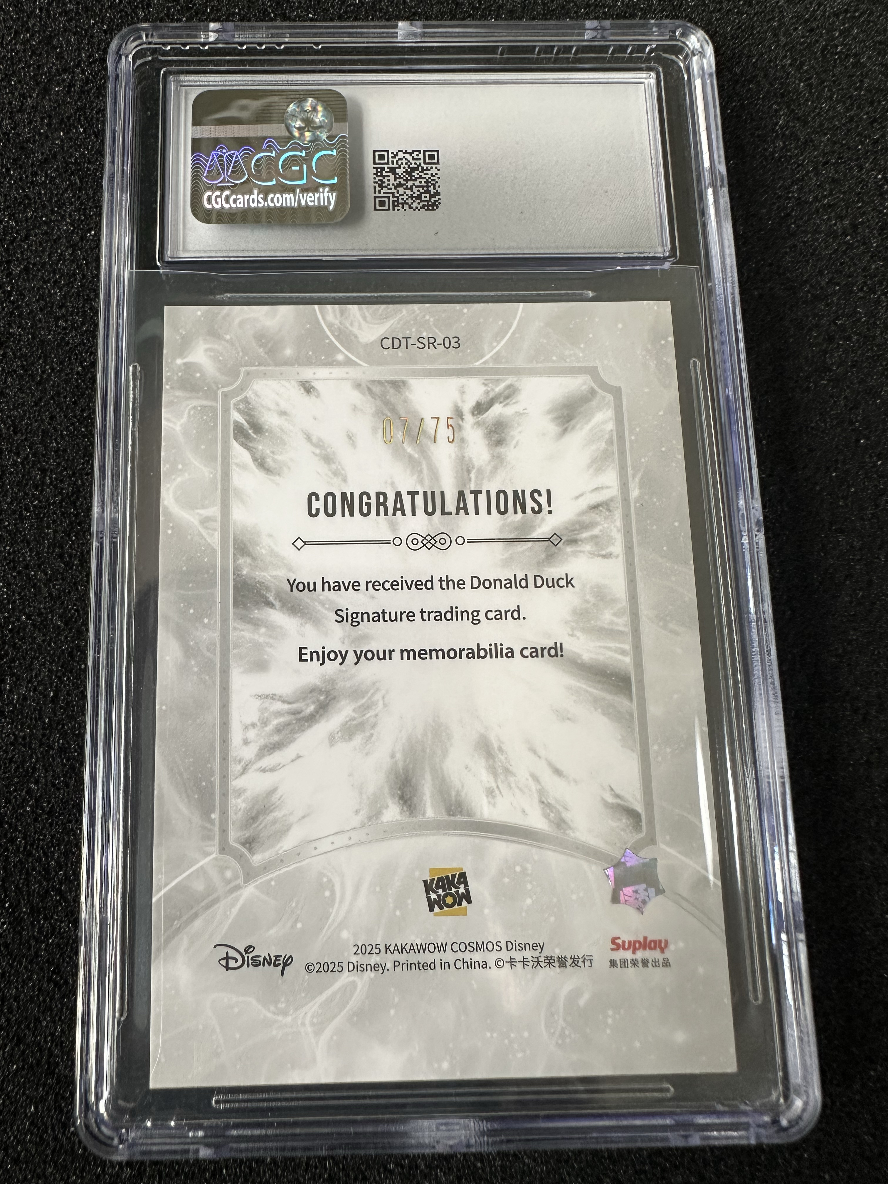 2025 KAKAWOW COSMOS Disney 卡卡沃 迪士尼系列收藏卡 /75编 红折 单签 签字卡 印签 米老鼠和唐老鸭 唐老鸭 Donald Duck 评级卡 CGC9.5分