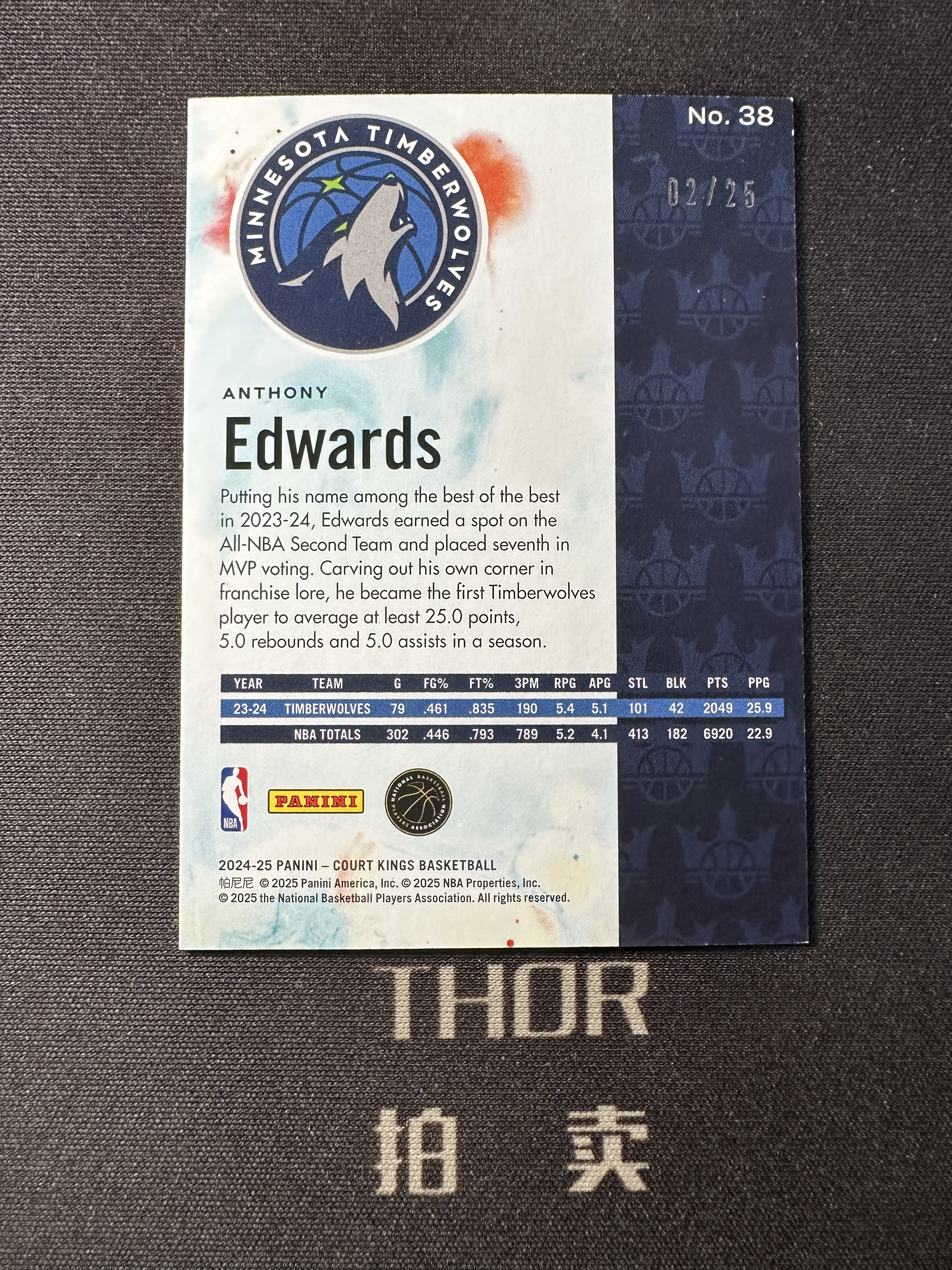 【Thor拍卖】2024-25 Panini Court Kings Anthony Edwards 油画 森林狼 安东尼 爱德华兹 华子 折射 特卡 02/25编 低编【校长】1