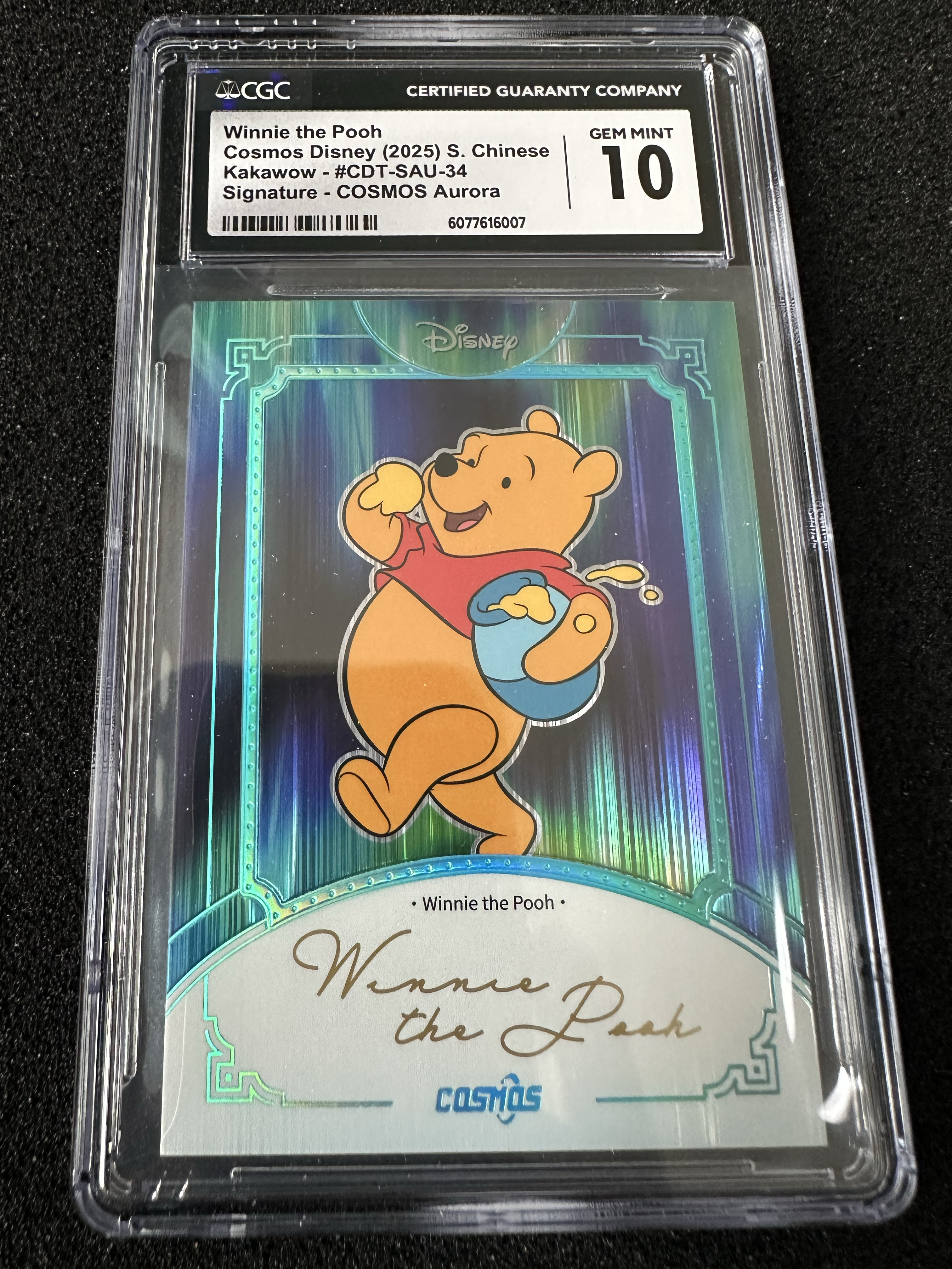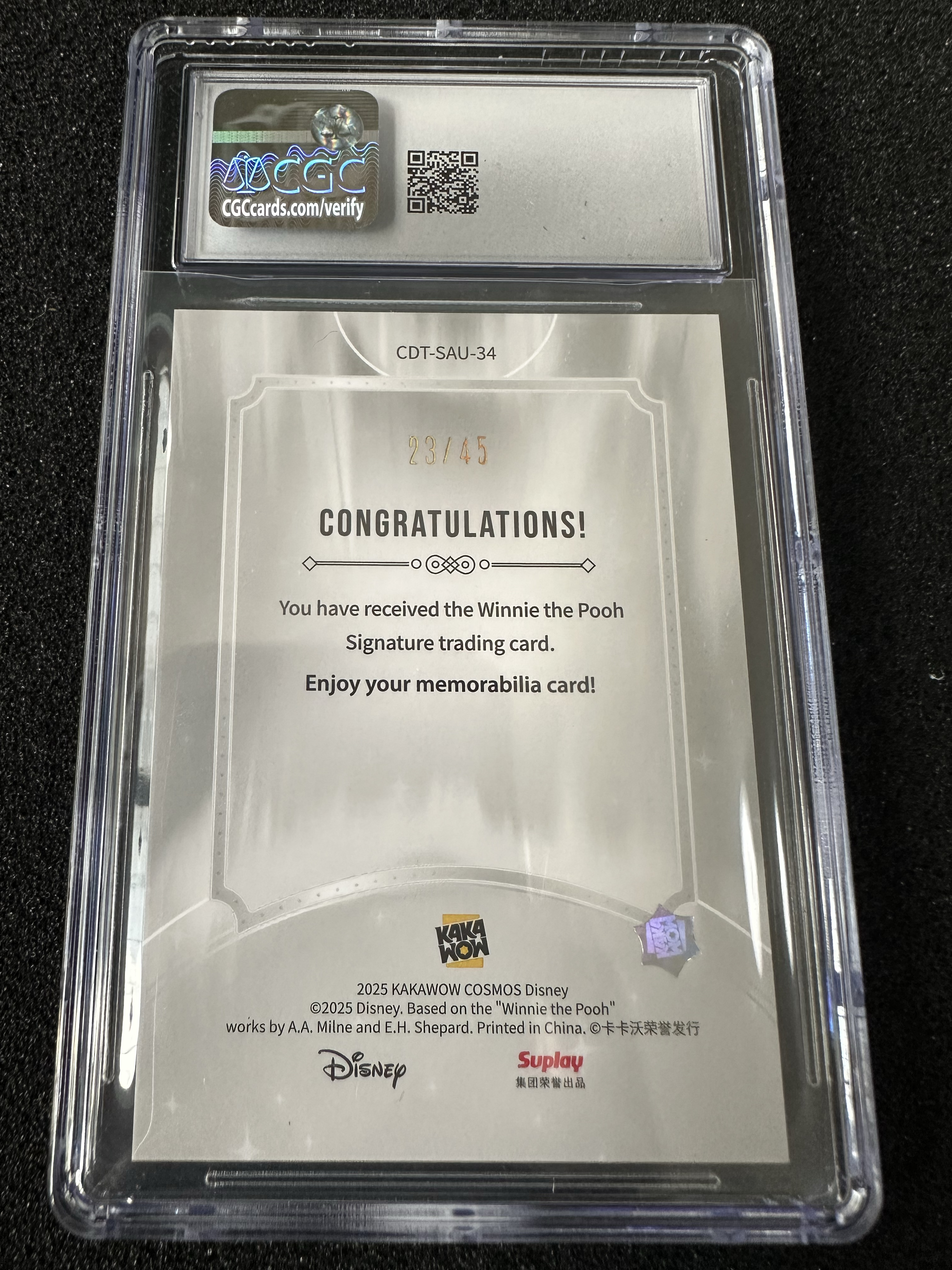 2025 KAKAWOW COSMOS Disney 卡卡沃 迪士尼系列收藏卡 /45编 极光折 单签 签字卡 印签 噗噗 小熊维尼 Winnie the pooh 评级卡 CGC10分